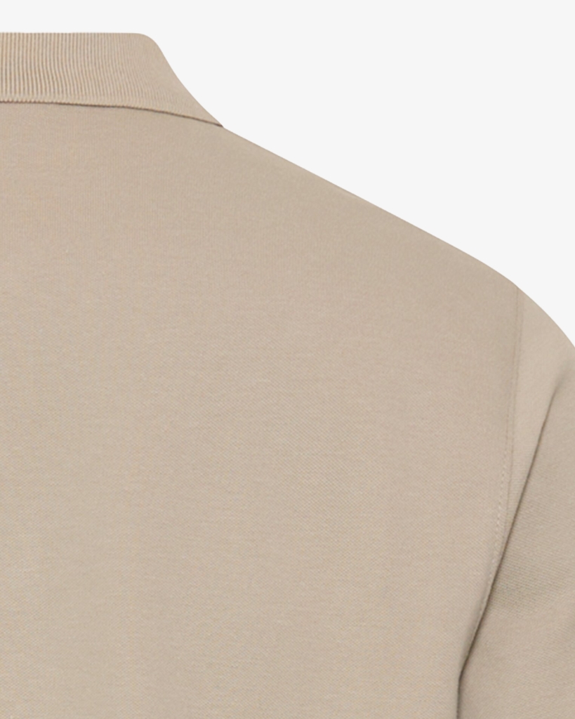 Klassisk polo i en lys beige nuance med et rent og stilfuldt udtryk. Den er designet med krave og knaplukning samt diskrete kontrastdetaljer, der giver et moderne touch. Den bløde kvalitet med stretch sikrer en behagelig pasform.