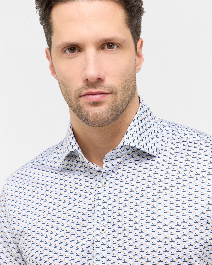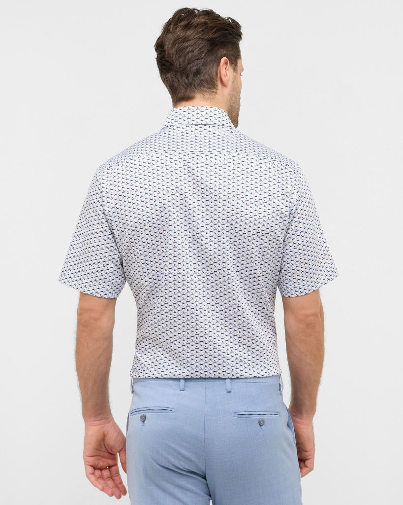 Opgrader garderoben med denne kortærmede skjorte i let twill-vævning. Den er fremstillet i 100% bomuld og har et fint, printet mønster i blå nuancer, der giver et stilrent og gennemført udtryk. Modern Fit sikrer en behagelig pasform med god bevægelsesfrihed, mens den klassiske Kent-krave fuldender det skarpe look.