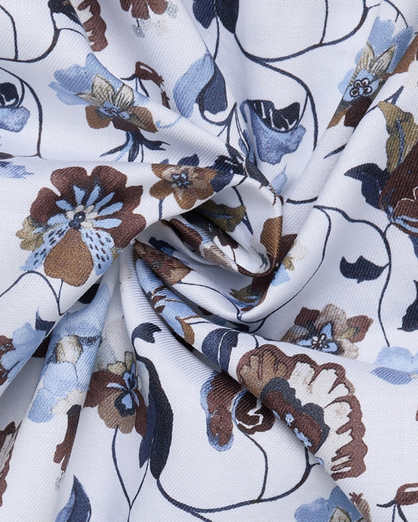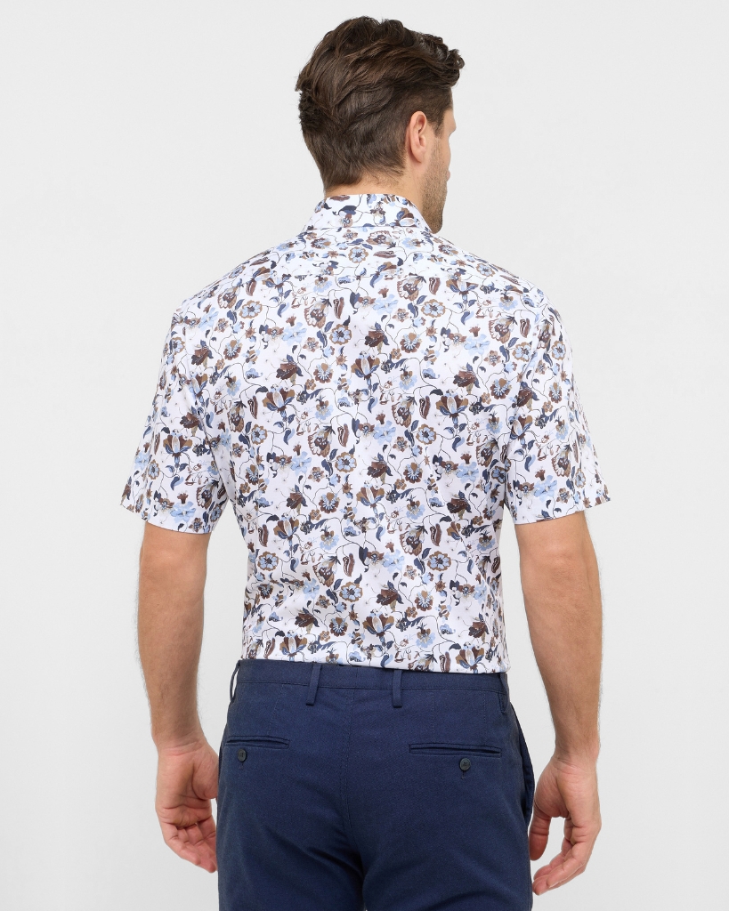 Kortærmet skjorte i let twill-kvalitet fremstillet af 100% bomuld. Det detaljerede blomsterprint i mandel-, blå- og brune nuancer giver et varmt og levende udtryk. Modern Fit sikrer en pæn pasform, og den klassiske Kent-krave fuldender det stilrene design.