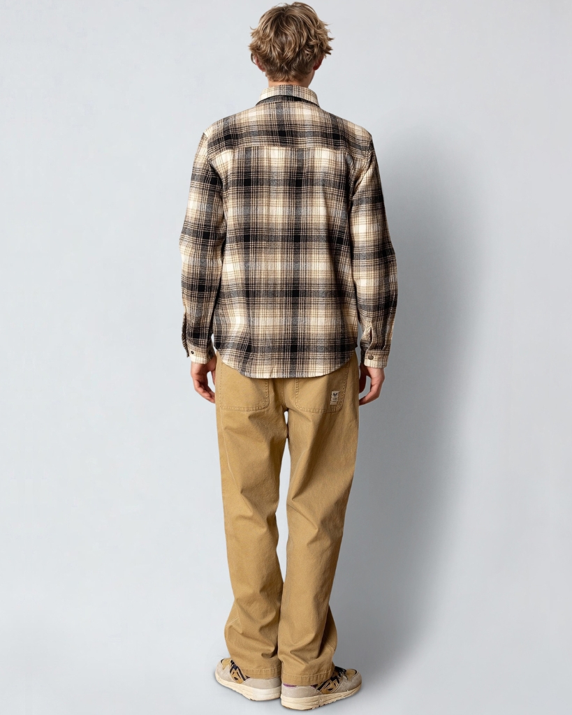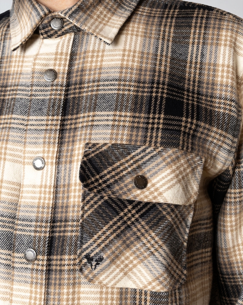 Robust og blød flannelskjorte i varme beige og brunlige nuancer. Den børstede bomuld giver ekstra komfort, og de markante tern kombineret med trykknapper giver et casual og funktionelt look.