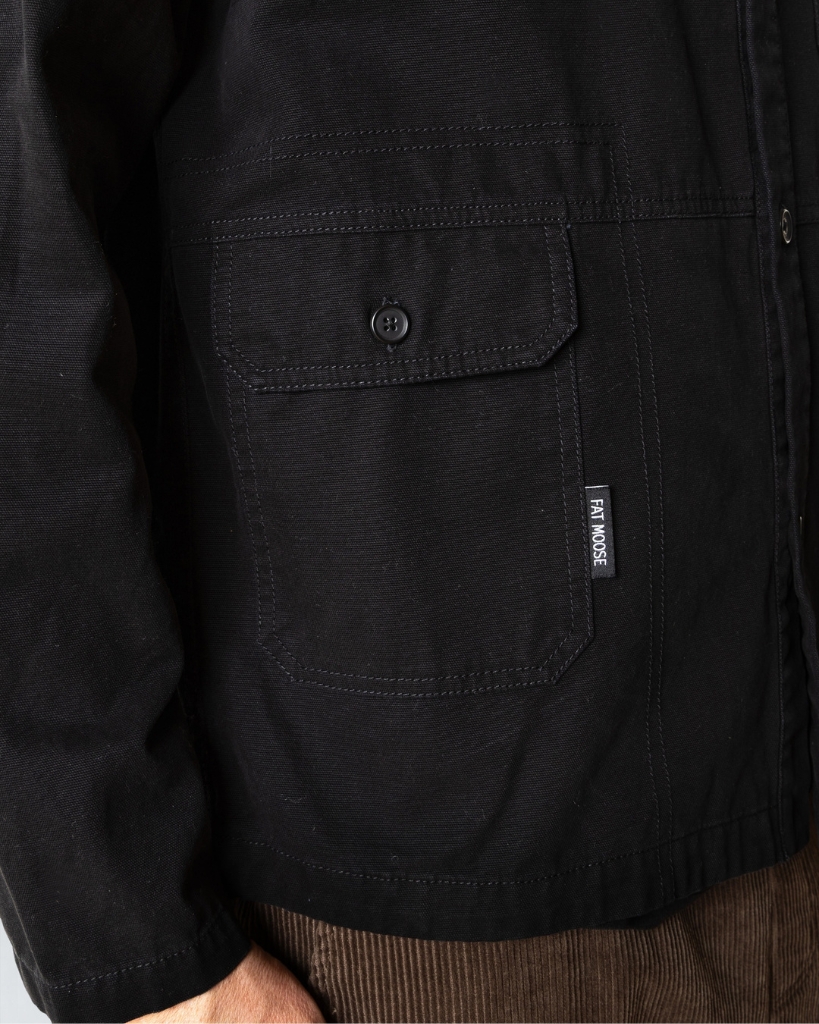 Giv dit outfit et råt og afslappet løft med denne slidstærke overshirt i kraftig bomuld. Den har et klassisk workwear-look med bryst- og sidelommer, og en pasform der sidder godt – uanset om du bruger den åben eller lukket.