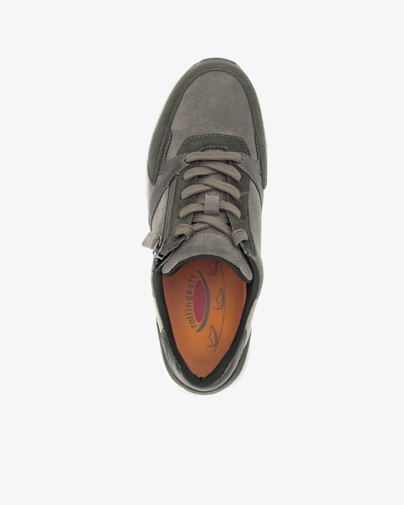 Komfortabel sko i ruskind med snøre og lynlås – let at tage på. Fine detaljer i skind. Den udtagelige Optifit indersål giver god støtte, og skoen har Comfort vidde G, som giver ekstra plads til forfoden. Kilehæl på 1,5 cm.