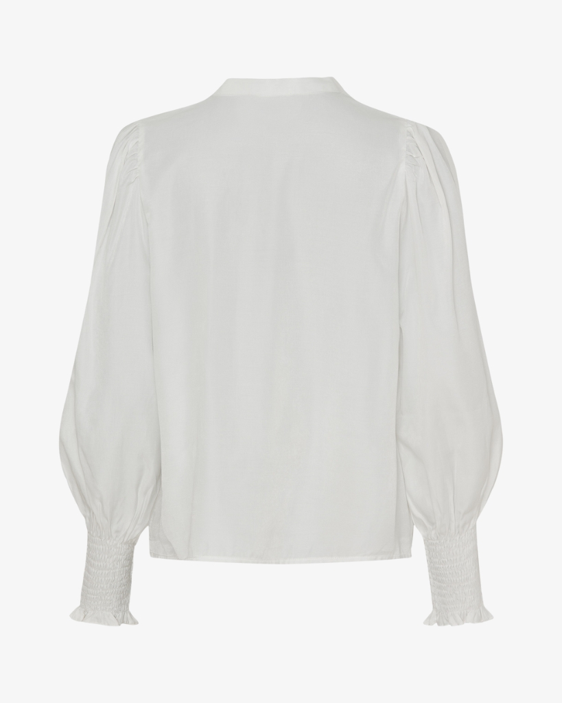 En smuk bluse i blød viskose med elegante broderi anglaise-detaljer. De lange ærmer med smockkant giver et feminint og sofistikeret udtryk. Perfekt til både hverdag og pænere brug.