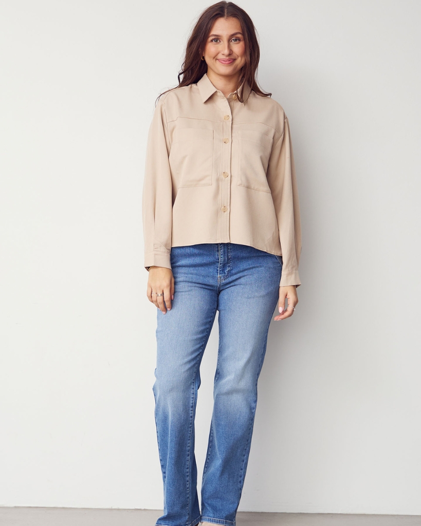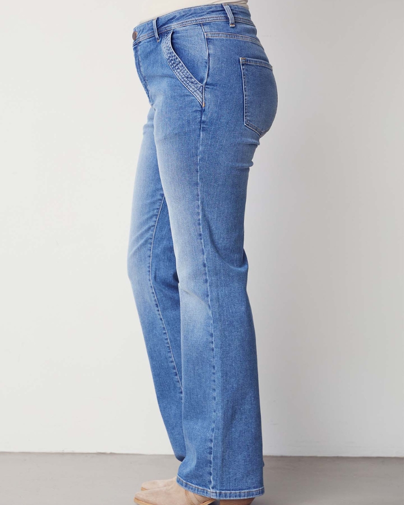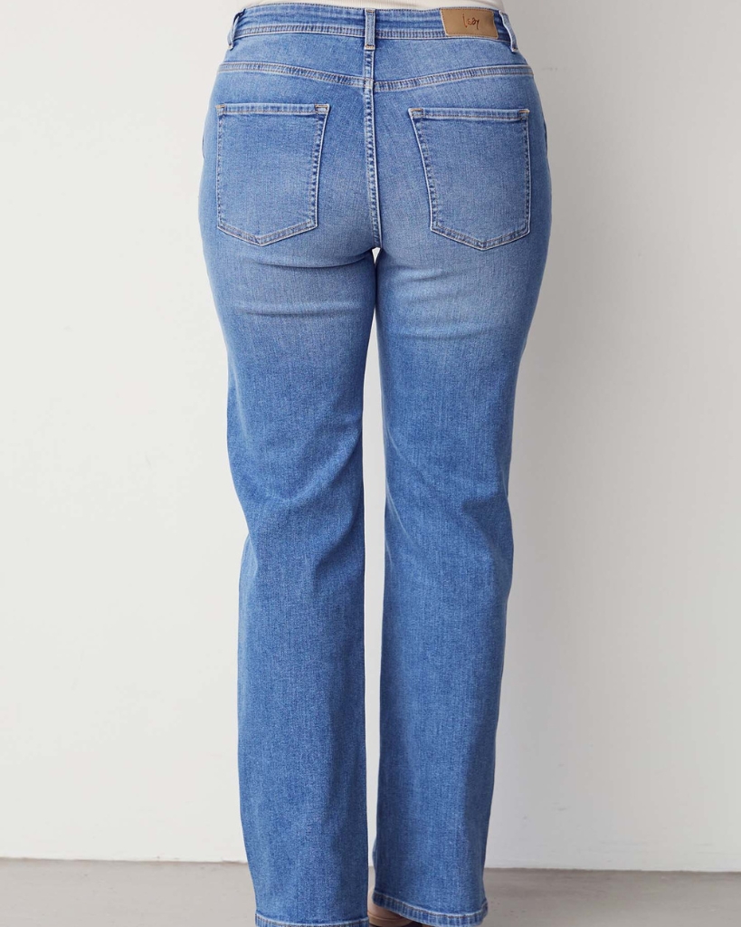 Lyseblå jeans med klassiske, lige ben og en flot, let vasket overflade. Den høje talje giver en elegant silhuet, mens de skrå frontlommer med stikningsdetalje tilfører et moderne præg. Indvendig benlængde er 82 cm (32,3”).