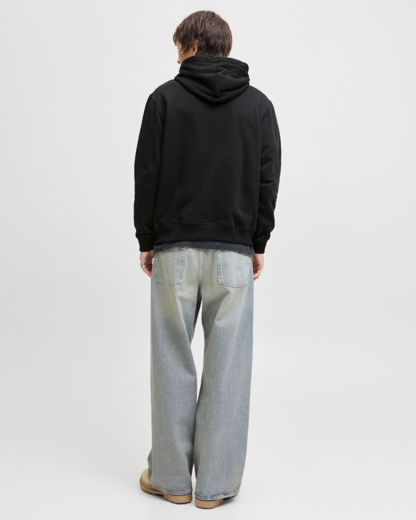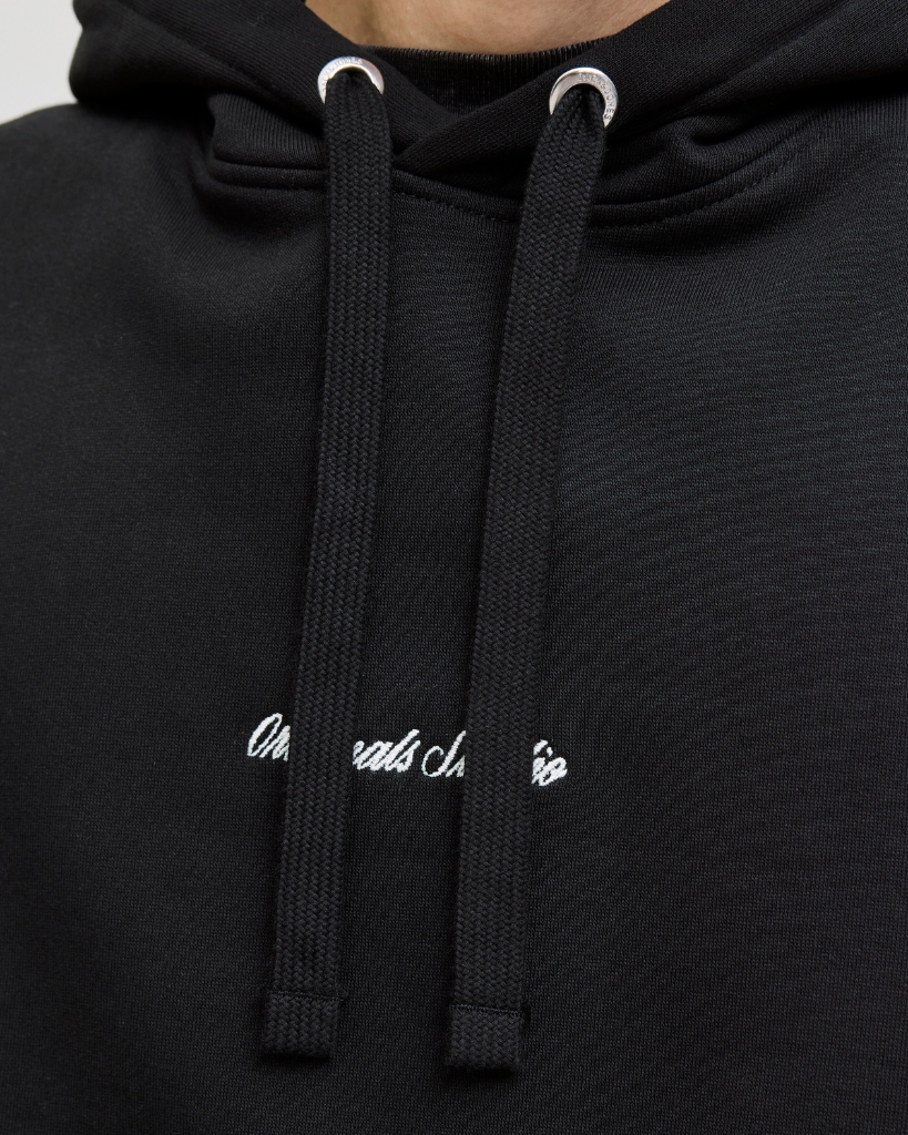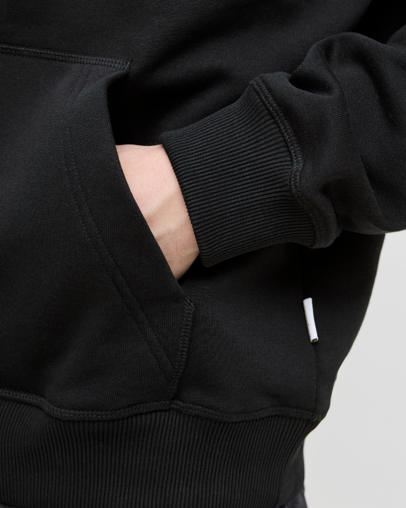 Giv din garderobe et løft med denne sorte hoodie i afslappet pasform. Den har en blød, børstet inderside og en klassisk kængurulomme. En diskret brodering på brystet giver et enkelt og stilfuldt udtryk.