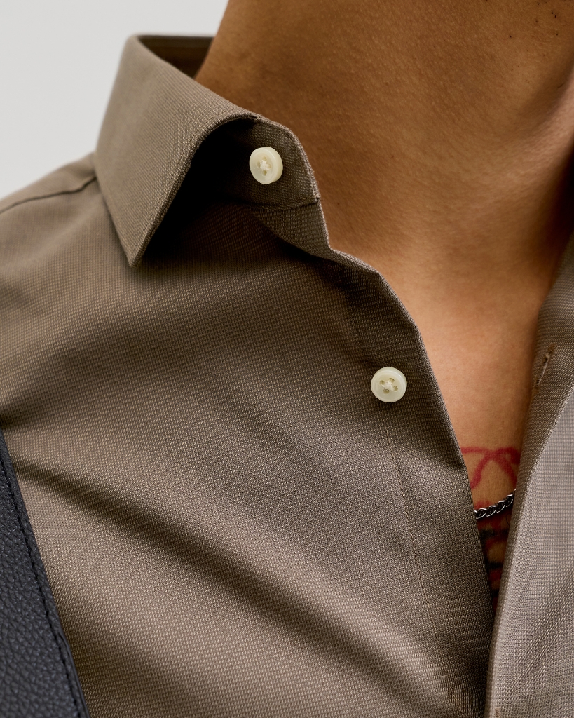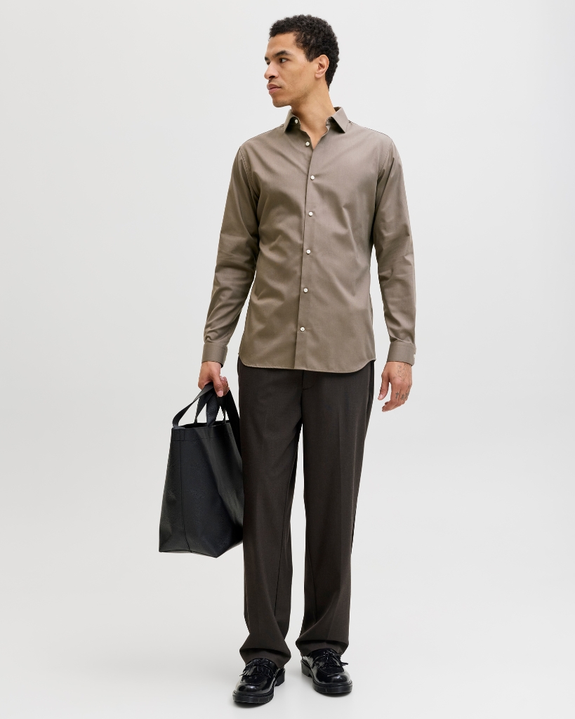 En skarp og stilren skjorte i en lun brun nuance, der passer perfekt til både hverdag og mere formelle sammenhænge. Den er lavet i økologisk bomuld med en tæt vævet struktur og slim fit for en moderne silhuet.