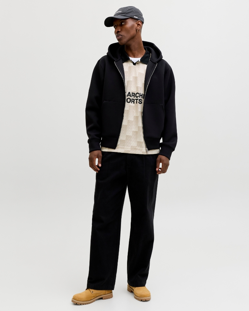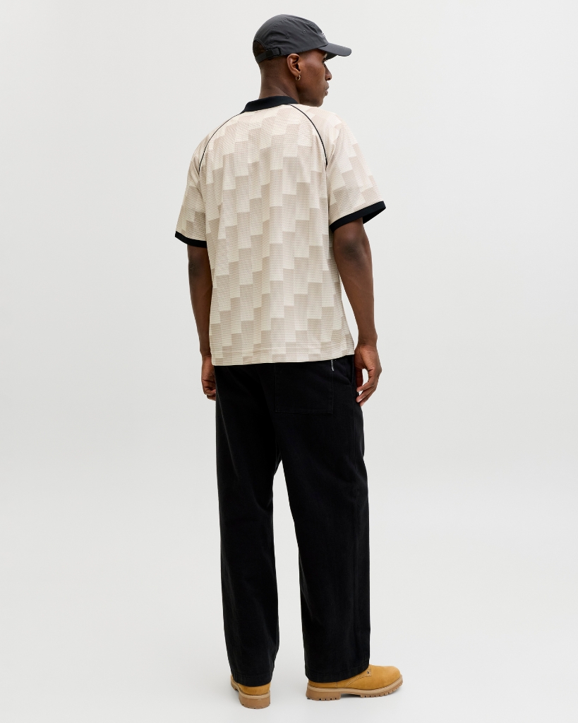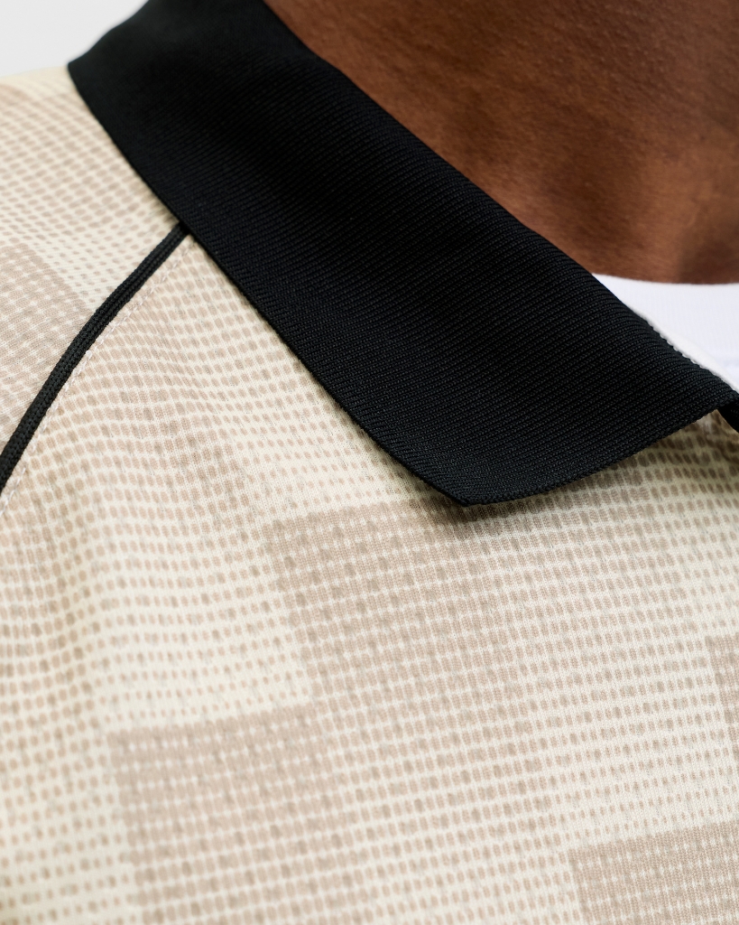 Sporty t-shirt i lys beige nuance med et markant print og et moderne udtryk. Den er designet med polo krave og en løs pasform, der giver god komfort. En let model med fokus på åndbarhed og bevægelsesfrihed.