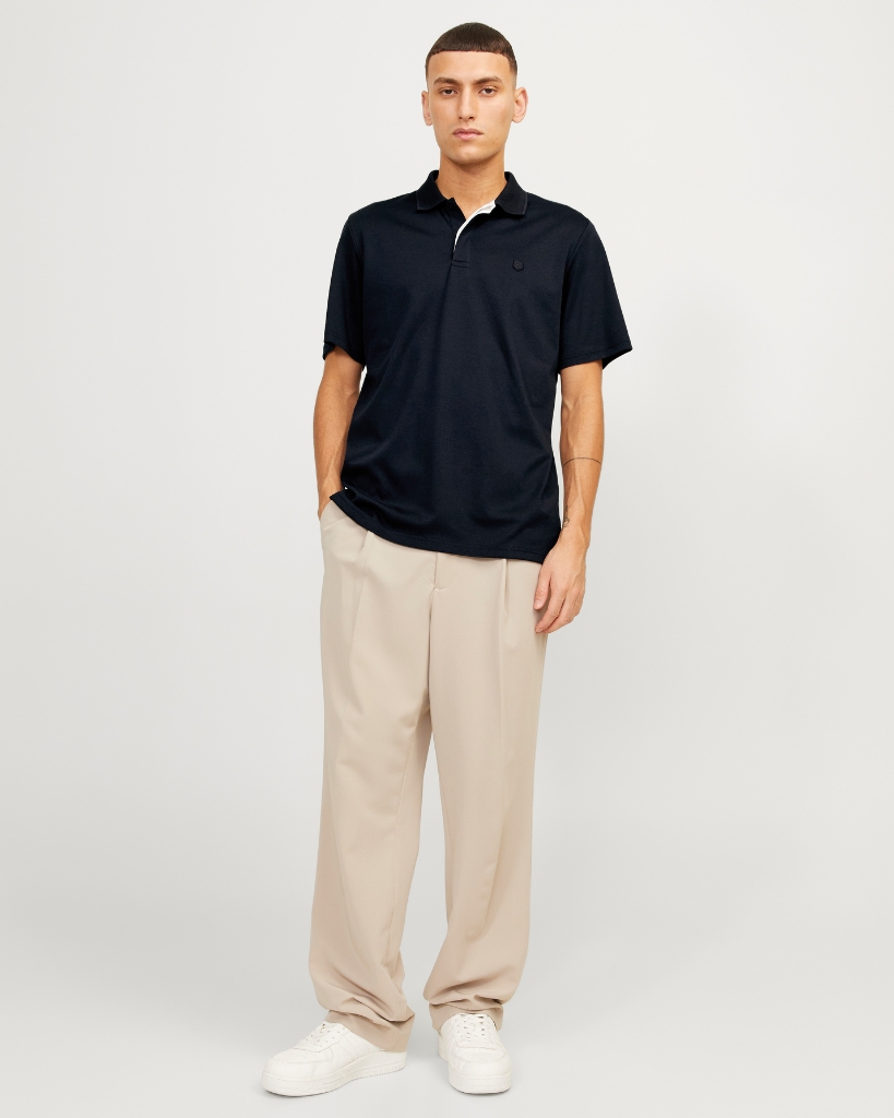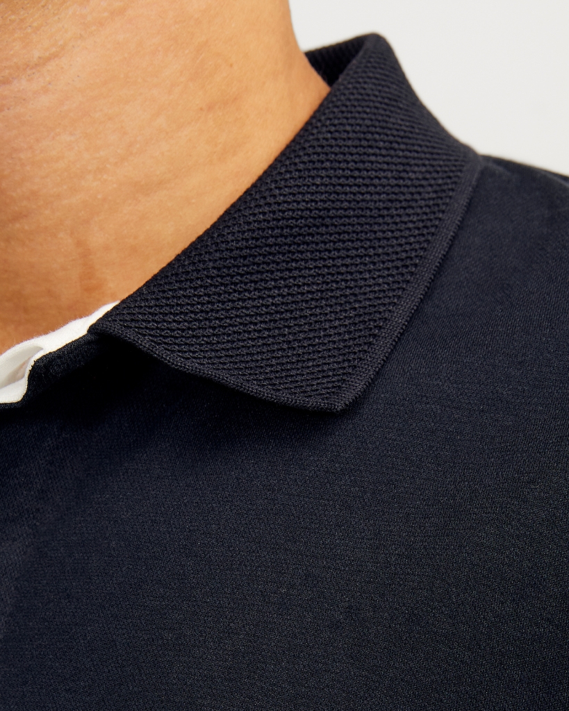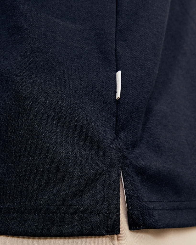 En tidløs og mørkeblå polo, der passer perfekt ind i enhver garderobe. Den bløde jerseykvalitet og klassiske krave giver en afslappet, men velklædt stil. Med diskret badge på brystet og stolpelukning med knap er den både enkel og elegant.