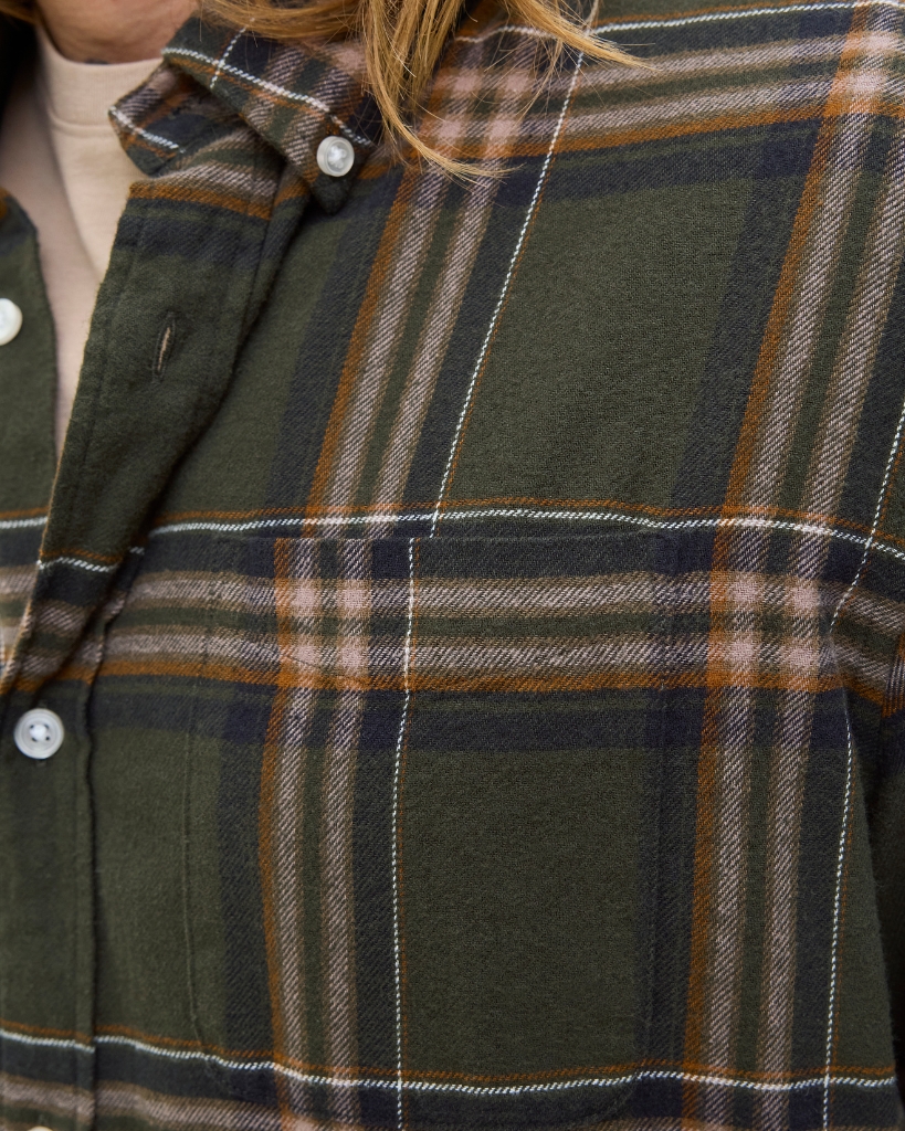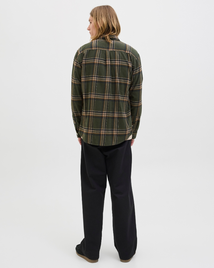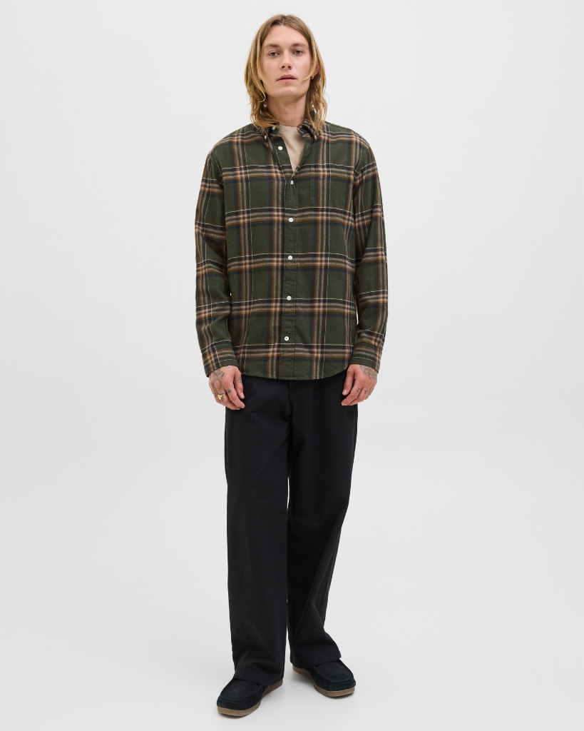 Blød flannel-skjorte i dyb grøn nuance med klassiske tern. Skjorten er skabt i en kraftig twill-vævning med et regular fit, der giver både komfort og bevægelsesfrihed. Et sikkert valg til efterårets garderobe.