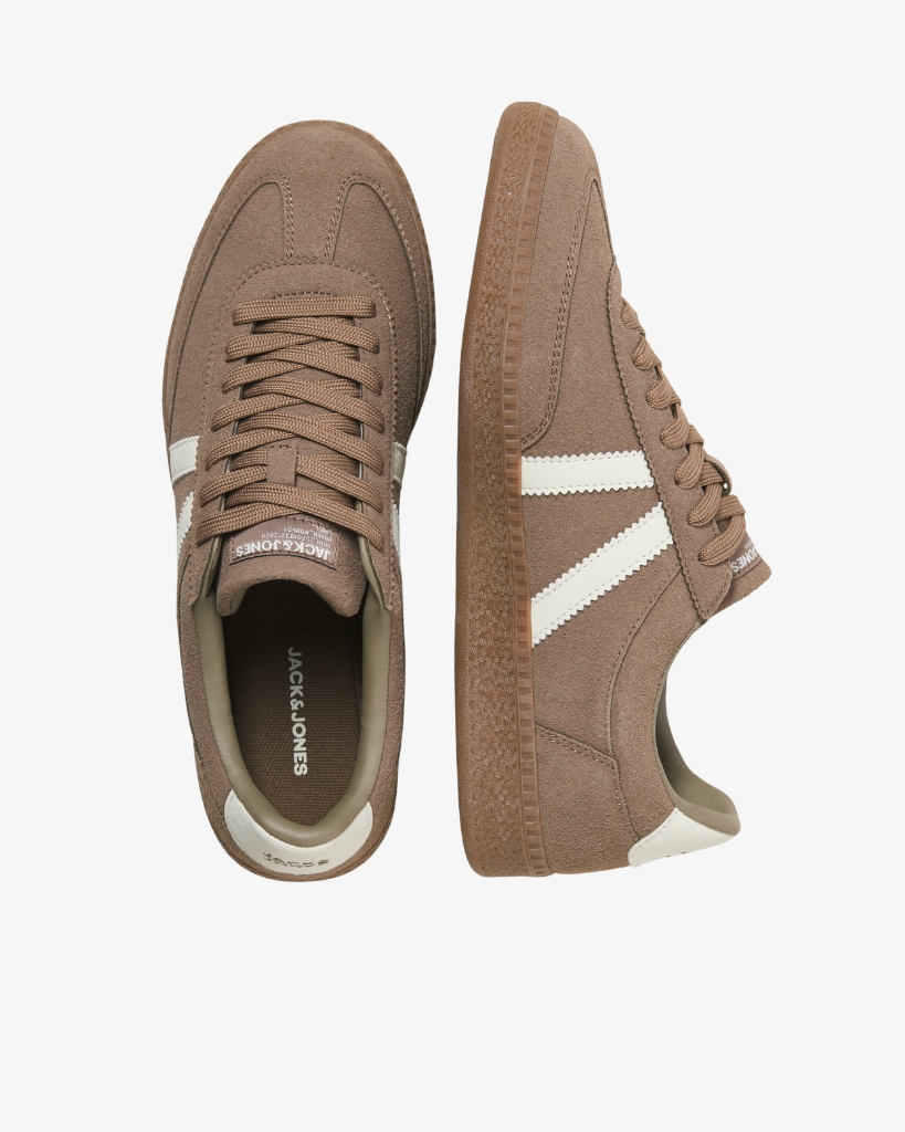 En klassisk sneaker med et retroinspireret design og rene linjer. Den er designet med snørelukning, rund snude og en fleksibel gummisål, som giver et sporty og afslappet udtryk. De kontrastfarvede striber på siden giver skoen et karakteristisk look.