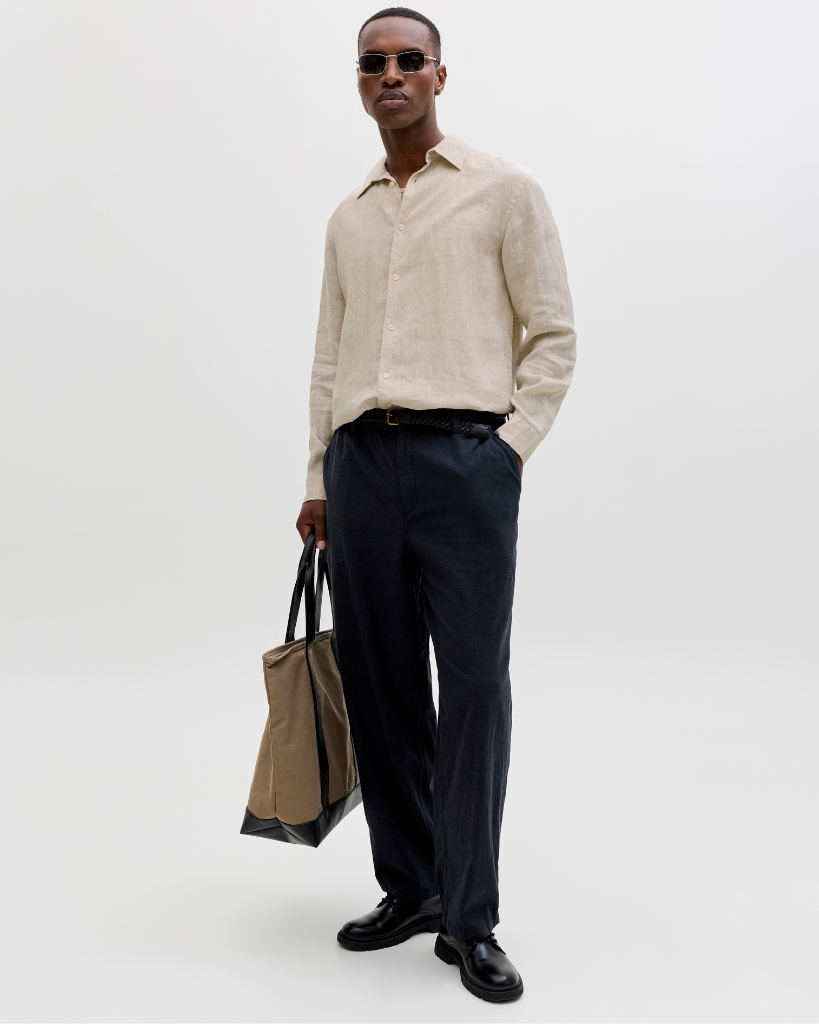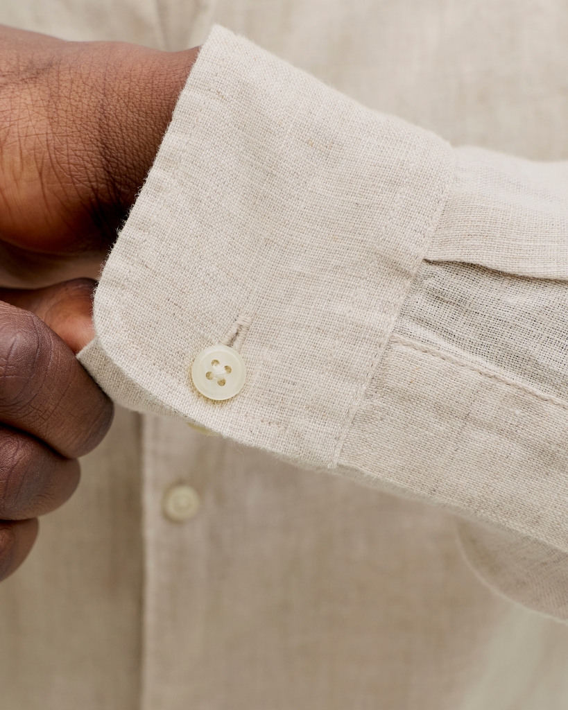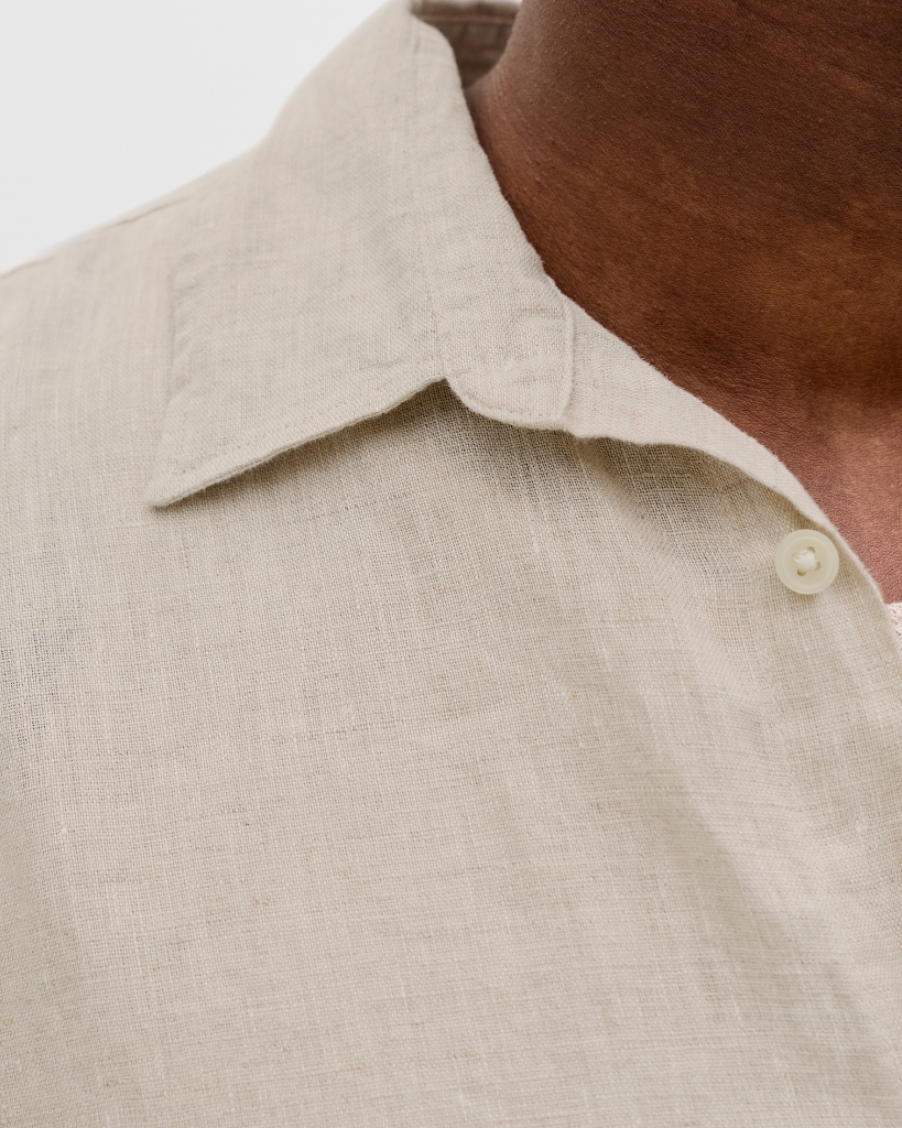 En let og luftig hørskjorte i en lys, naturlig nuance. Den åndbare kvalitet og den afslappede pasform gør den behagelig hele dagen, mens klassisk krave og knaplukning giver et rent og tidløst udtryk.
