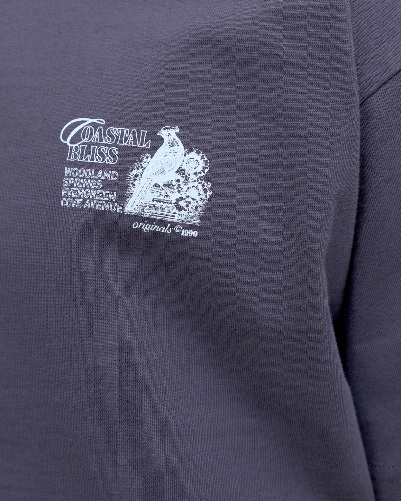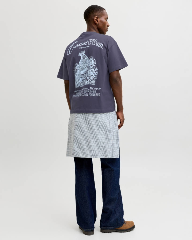 En afslappet T-shirt i en støvet grå nuance med et moderne udtryk. Den er fremstillet i blød bomuld og har et diskret print på brystet samt et større print på ryggen, som giver ekstra karakter. Klassisk rund hals og korte ærmer sikrer god komfort.