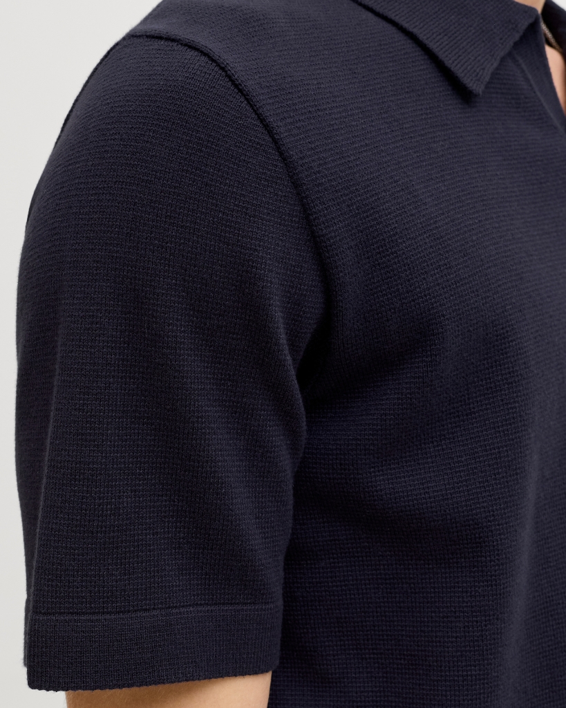 Elegant og komfortabel strikpolo i en dyb marineblå farve. Designet i plus size med en afslappet pasform og åben splitkrave. Det bløde strikmateriale giver både stil og bevægelighed i hverdagen.