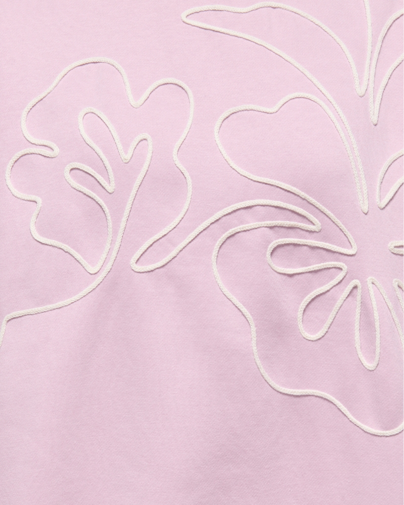 Giv garderoben et frisk pust med denne sweatshirt i støvet rosa. Den har en dekorativ blomster-inspireret syning foran, som tilfører et feminint og moderne udtryk. Den børstede inderside gør den ekstra blød og behagelig at have på. Rummelig i størrelsen – perfekt til et afslappet look.