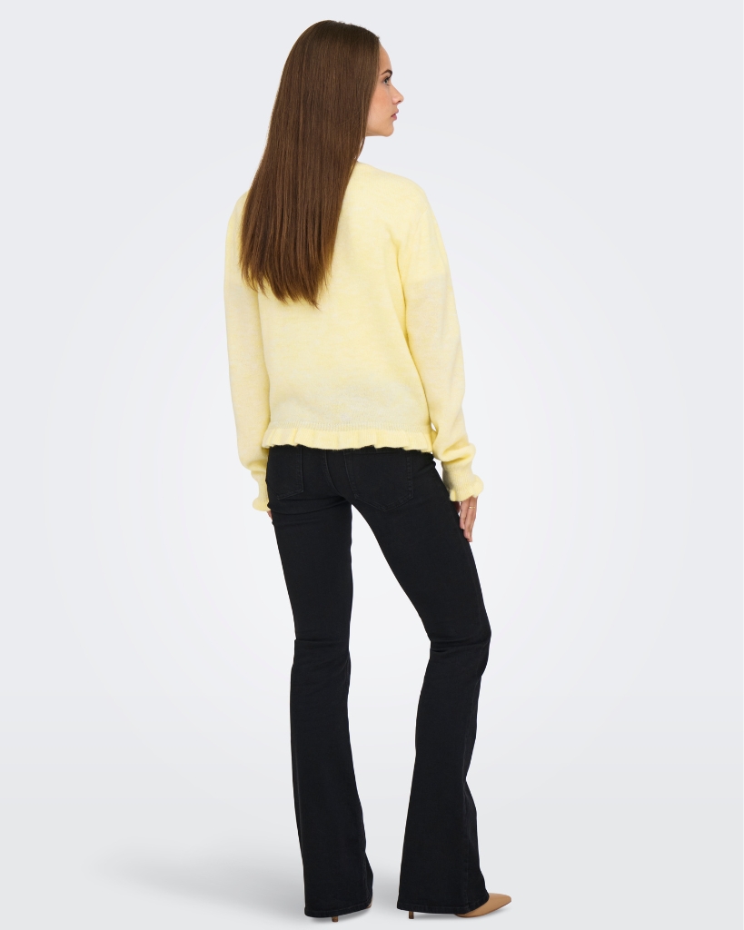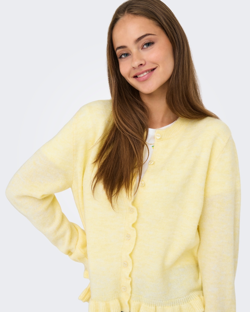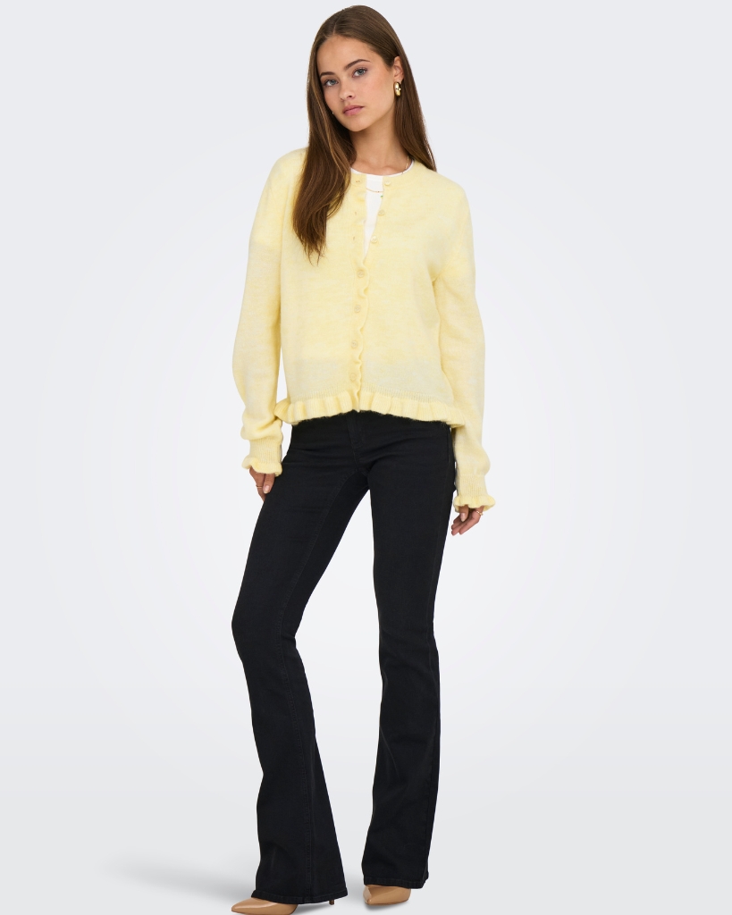 Denne bløde cardigan fra JDY kombinerer komfort med feminine detaljer. Flæsekanter og rund hals giver et klassisk, men charmerende look. Perfekt som ekstra lag på kølige dage.