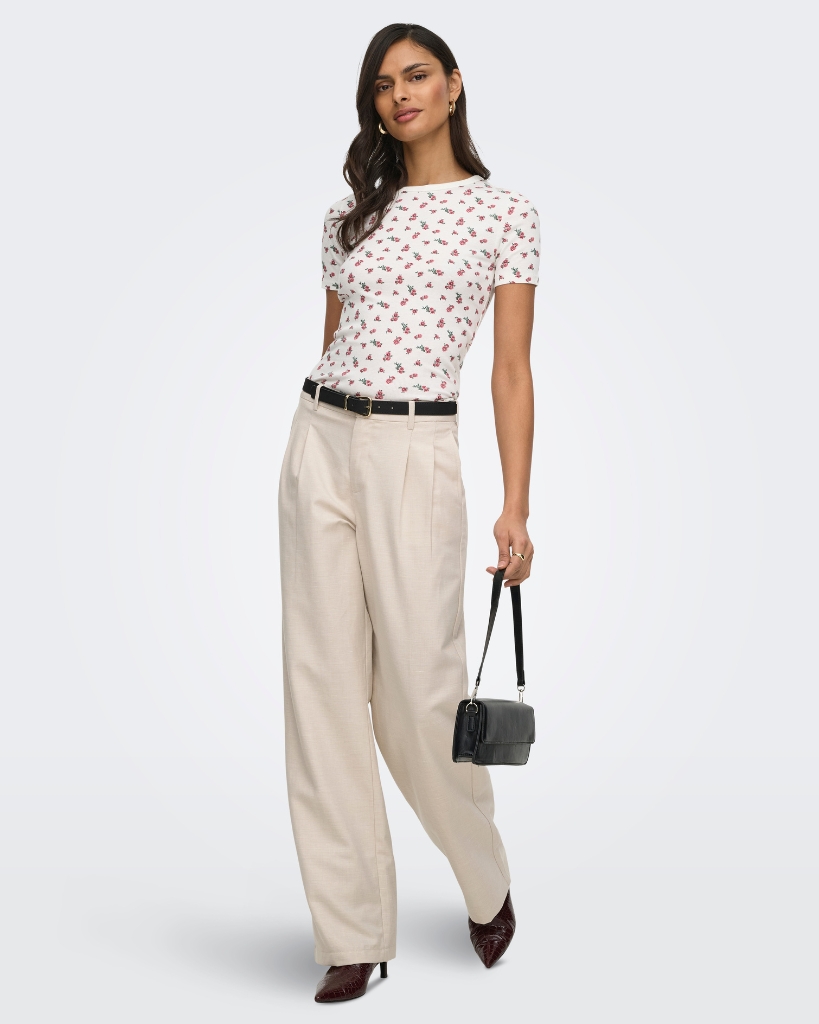 Ribstrikket top med små blomster og en tætsiddende pasform. Den bløde kvalitet smyger sig til kroppen og giver et enkelt udtryk med et fint, diskret print.