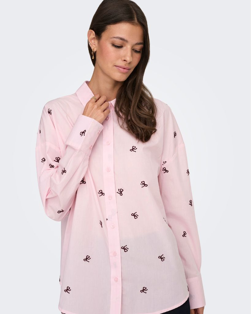 Skøn skjortebluse fra JDY i en let bomuldskvalitet. Den lyserøde bund er pyntet med små, broderede detaljer og har en længere ryg for et moderne look. Perfekt til både hverdagsbrug og pænt tøj.