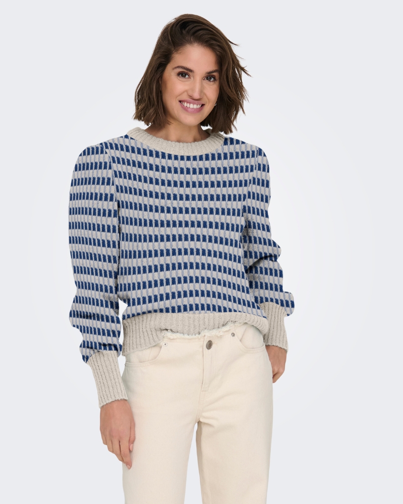 JDY Sigred Life Puff Strik Blå/sand