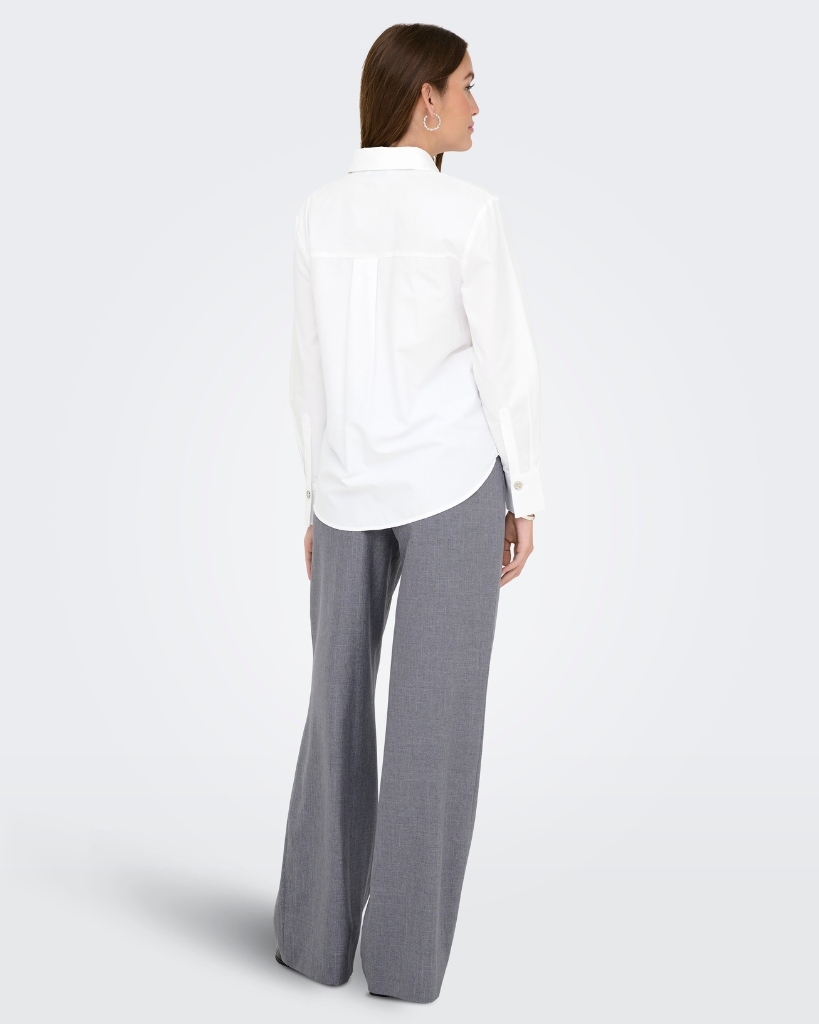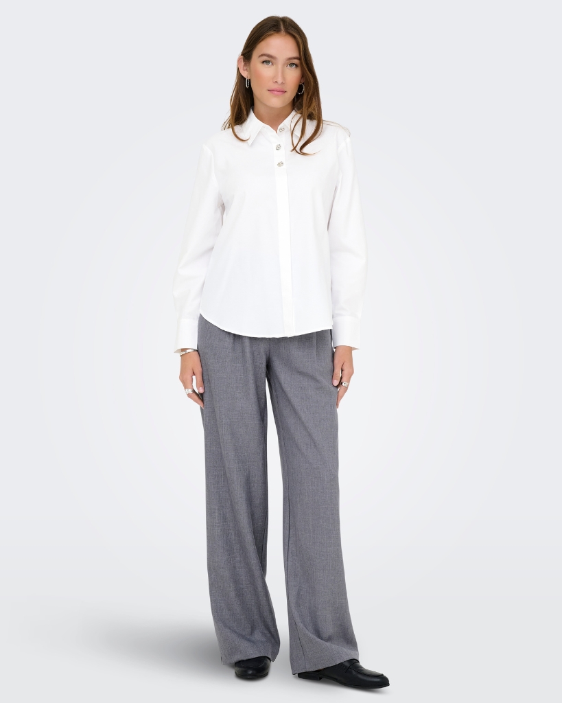 En tidløs hvid skjorte med et strejf af elegance takket være de dekorative knapper. Den løse pasform og klassiske krave gør den nem at style op eller ned. Ideel til både kontor og fritid.