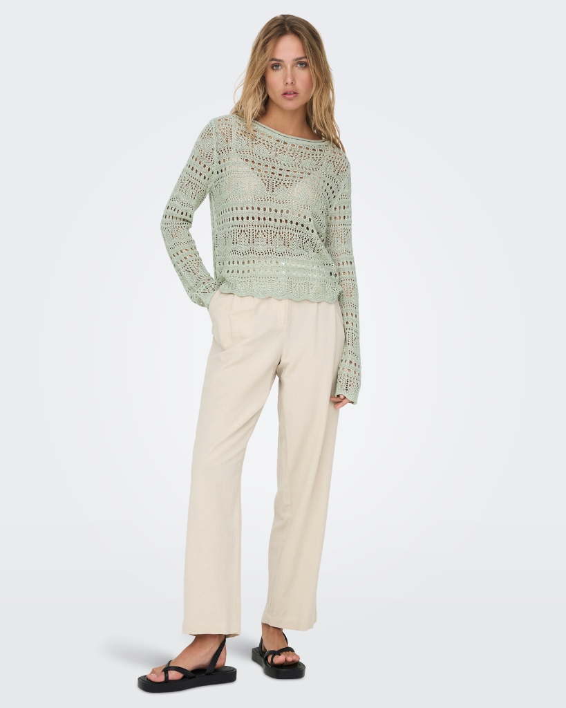 Tilføj lidt ekstra kant med denne sorte hæklet strikbluse fra JDY. Det lette og luftige design giver et elegant udtryk med bådhals, bølget kant og smukke, grafiske mønstre. Perfekt til lag-på-lag eller med en top under.