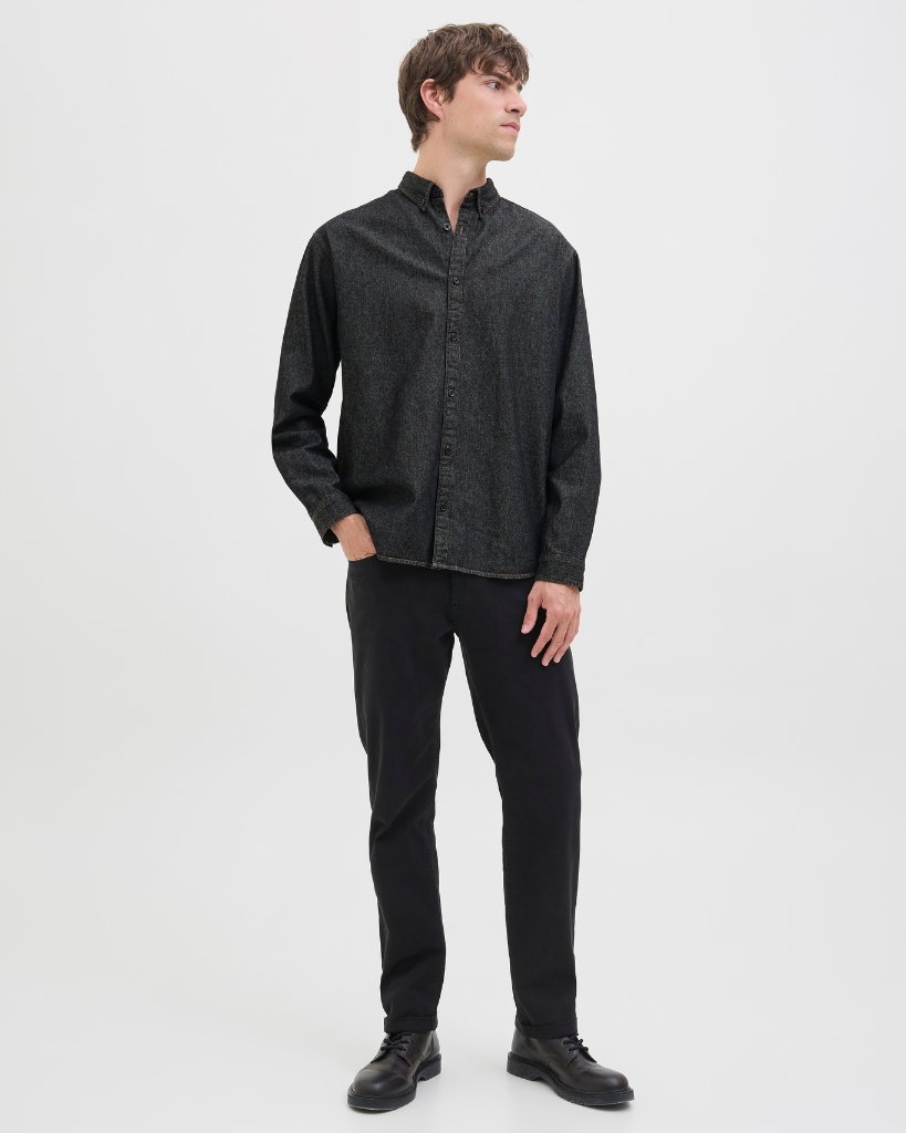 Avan er en afslappet denimskjorte i sort vask med et enkelt og stilrent udtryk. Skjorten er lavet i 100% bomuld med en behagelig, blød struktur og klassiske detaljer som knaplukning og krave. Perfekt både alene og som let overshirt.