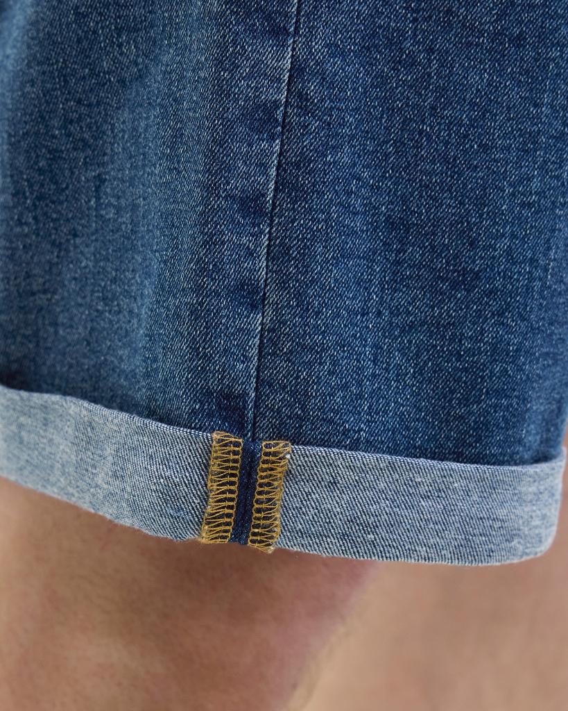 Klassiske denim shorts i en mørkere blå vask med et rent og tidløst udtryk. Designet med fem lommer og en behagelig pasform, der giver god bevægelsesfrihed. En enkel model med fokus på funktion og klassiske detaljer.