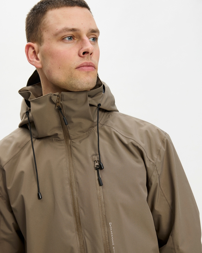 Funktionel jakke fra Kopenhaken i et rent og teknisk design. Den er udstyret med hætte, vandafvisende lynlåse og praktiske lommer, der giver et skarpt og moderne udtryk. Den lette kvalitet gør den ideel til skiftende vejr.