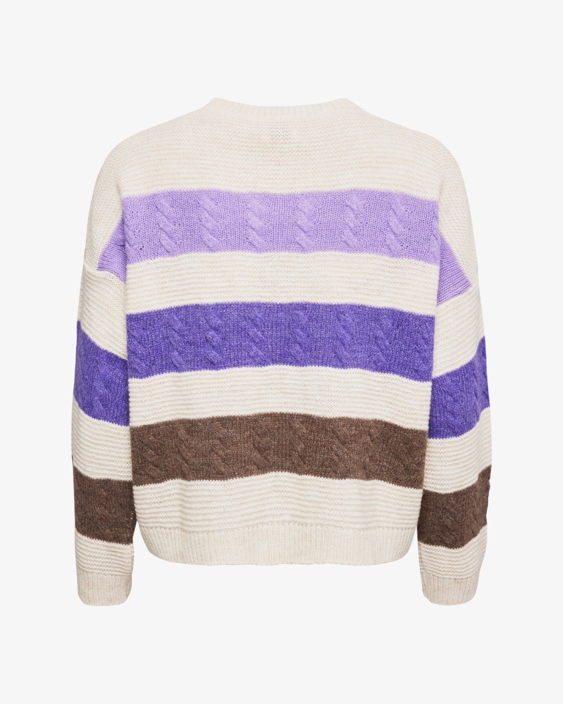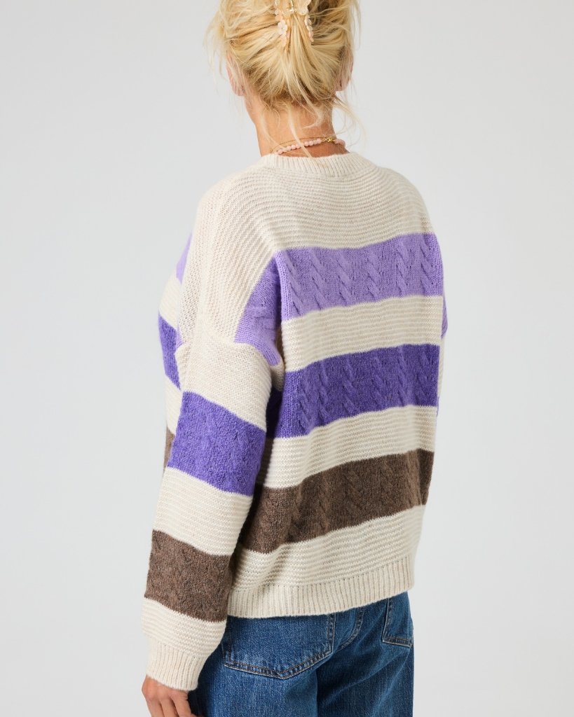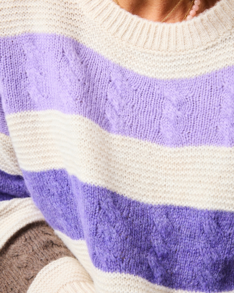 “HAVEN” fra LENE BEIER X LIND er en lækker, strikket sweater med brede blokstriber og fine snoninger i teksturen. Farverne er rolige og naturlige, og giver et stilfuldt og moderne look i en afslappet pasform.