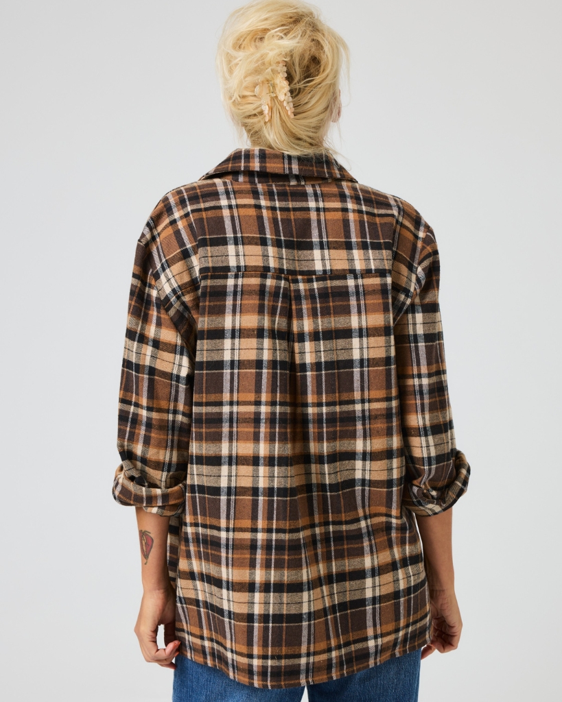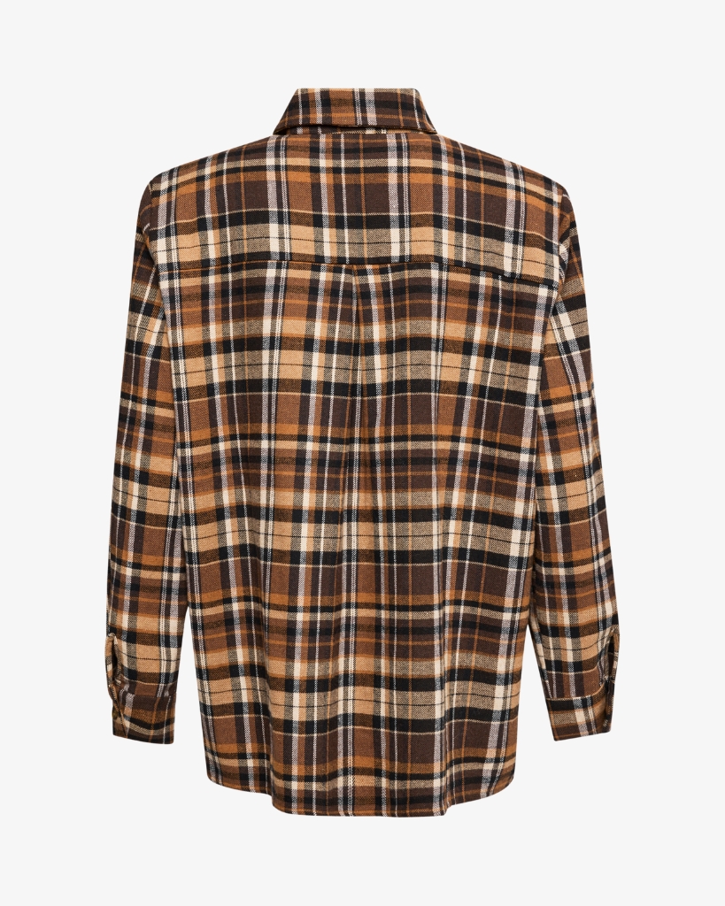 “SKOVHUGGEREN” fra LENE BEIER X LIND er en blød flannelskjorte med klassisk tern i varme, brune nuancer. Den rummelige pasform og praktiske brystlommer gør den både stilfuld og funktionel.