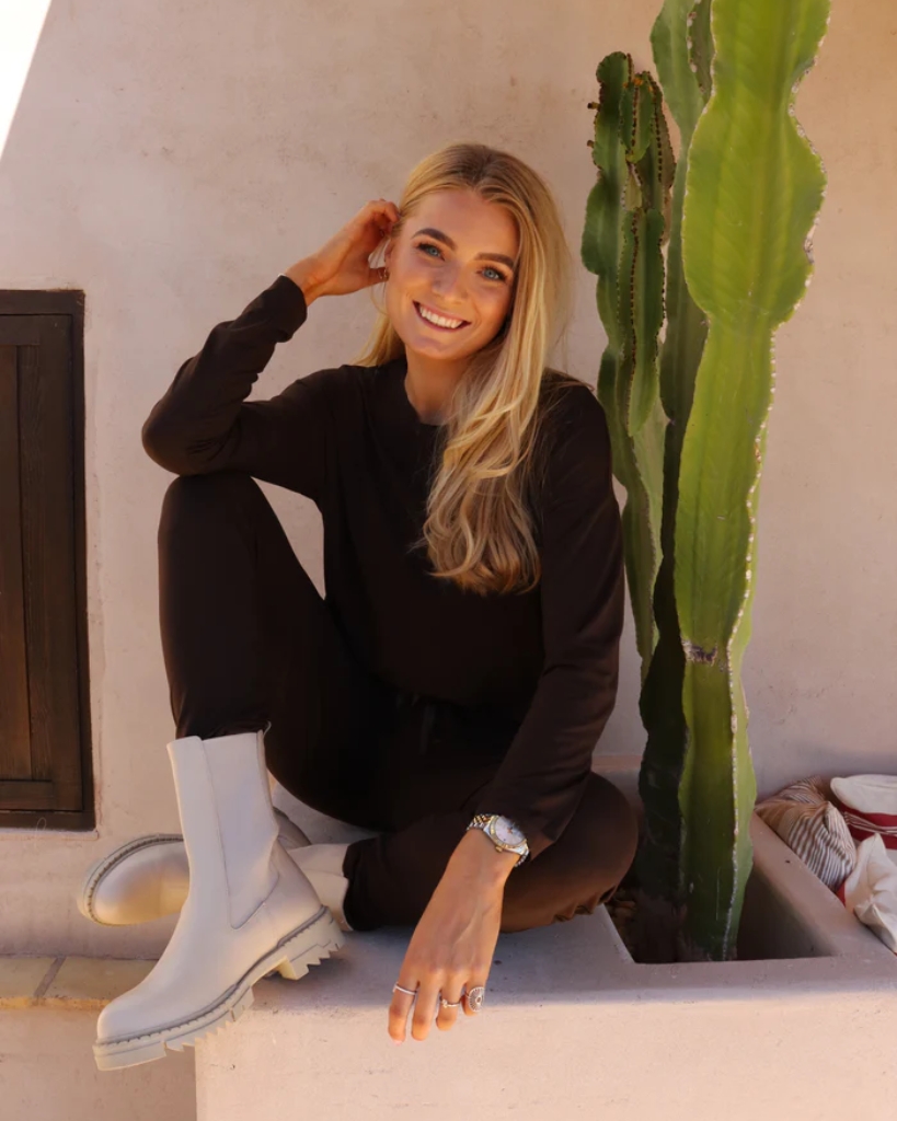En enkel og tidløs langærmet top i en dyb mocca-farve. Den har en afslappet pasform med let drop shoulder, som giver et flot og blødt fald. Den glatte og strækbare kvalitet føles behagelig mod huden og sikrer god bevægelsesfrihed.
