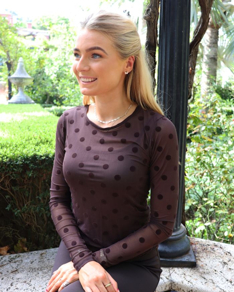 Denne elegante mesh bluse fra Liberté har et let transparent udtryk med store, tonede prikker der giver et flot og feminint look. Den tætsiddende pasform og det bløde, strækbare materiale gør den behagelig at have på hele dagen. Perfekt som lag-på-lag eller alene for et mere markant udtryk.