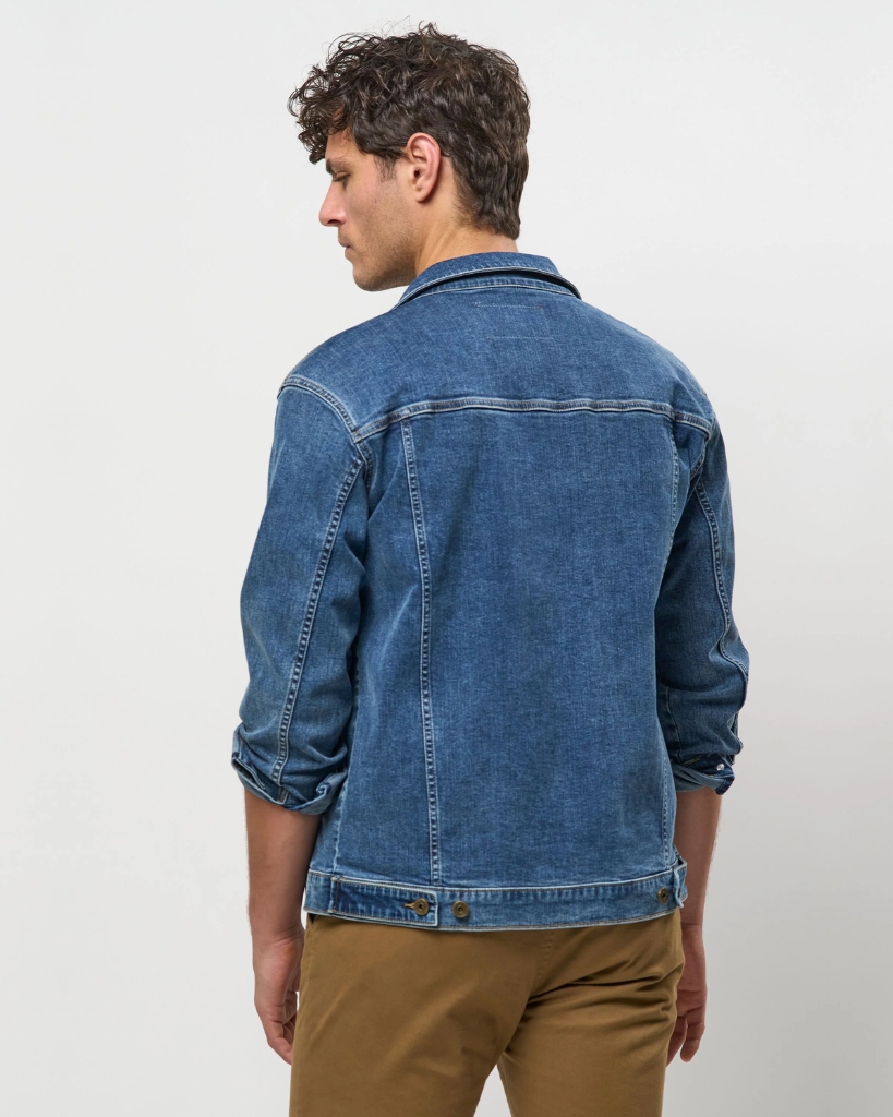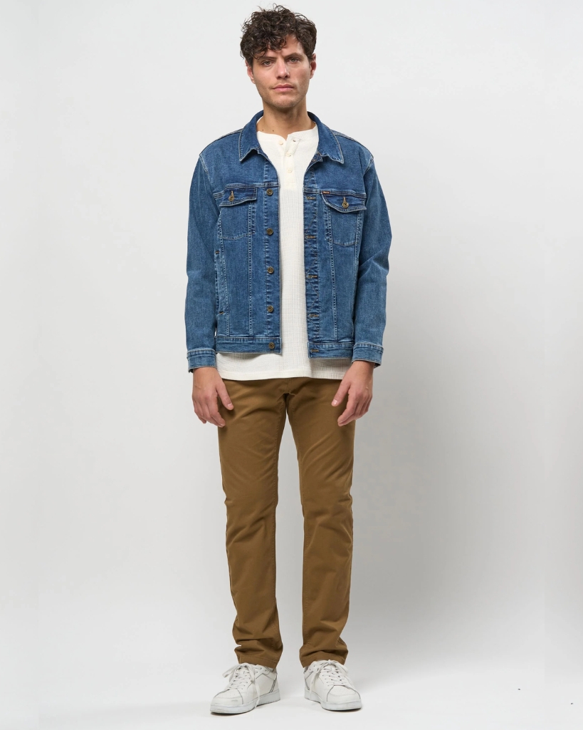 Conner er en klassisk denimjakke i en slidstærk bomuldsblanding med let stretch, der giver god komfort i hverdagen. Den har et tidløst workwear-inspireret design med knaplukning, brystlommer og sidelommer. Den mellemblå vask giver et autentisk og velkendt denimudtryk.
