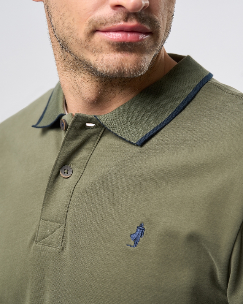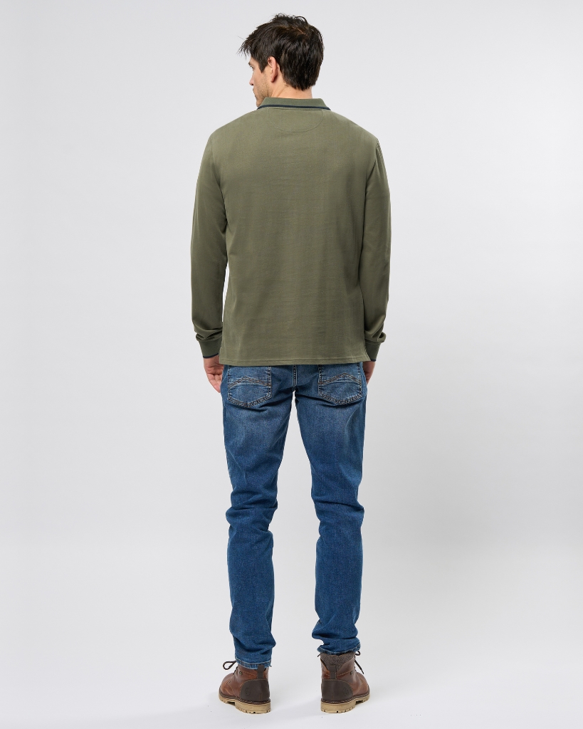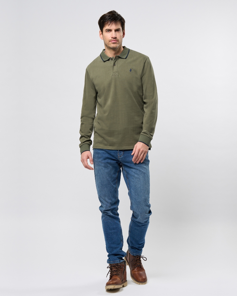Jim er en klassisk langærmet polo i blød bomuld, som kombinerer et sporty look med afslappet stil. De diskrete kontrastdetaljer ved krave og ærmer giver et stilrent løft, mens det broderede logo tilføjer et genkendeligt touch.