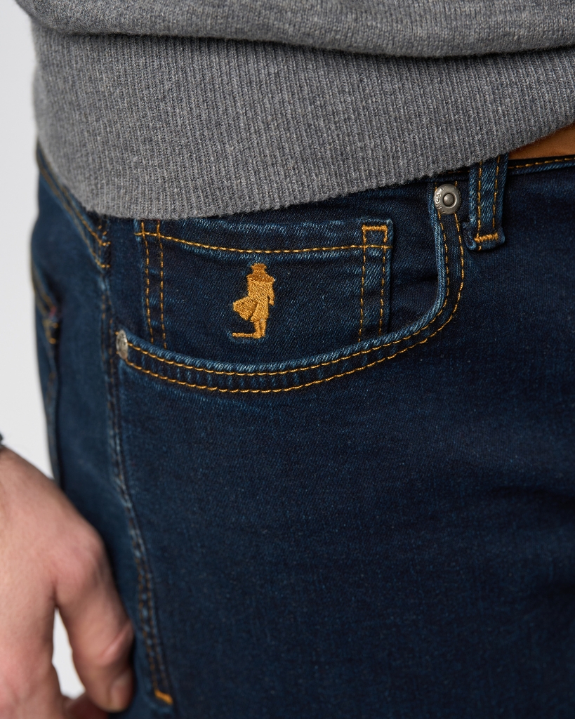 Rain jeans er et par stilrene hverdagsjeans i blød og strækbar bomuldskvalitet. De har klassisk 5-lommedesign, regular fit og diskrete detaljer – herunder broderet Rider-logo foran.