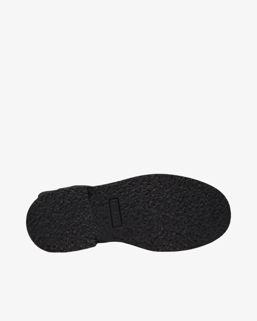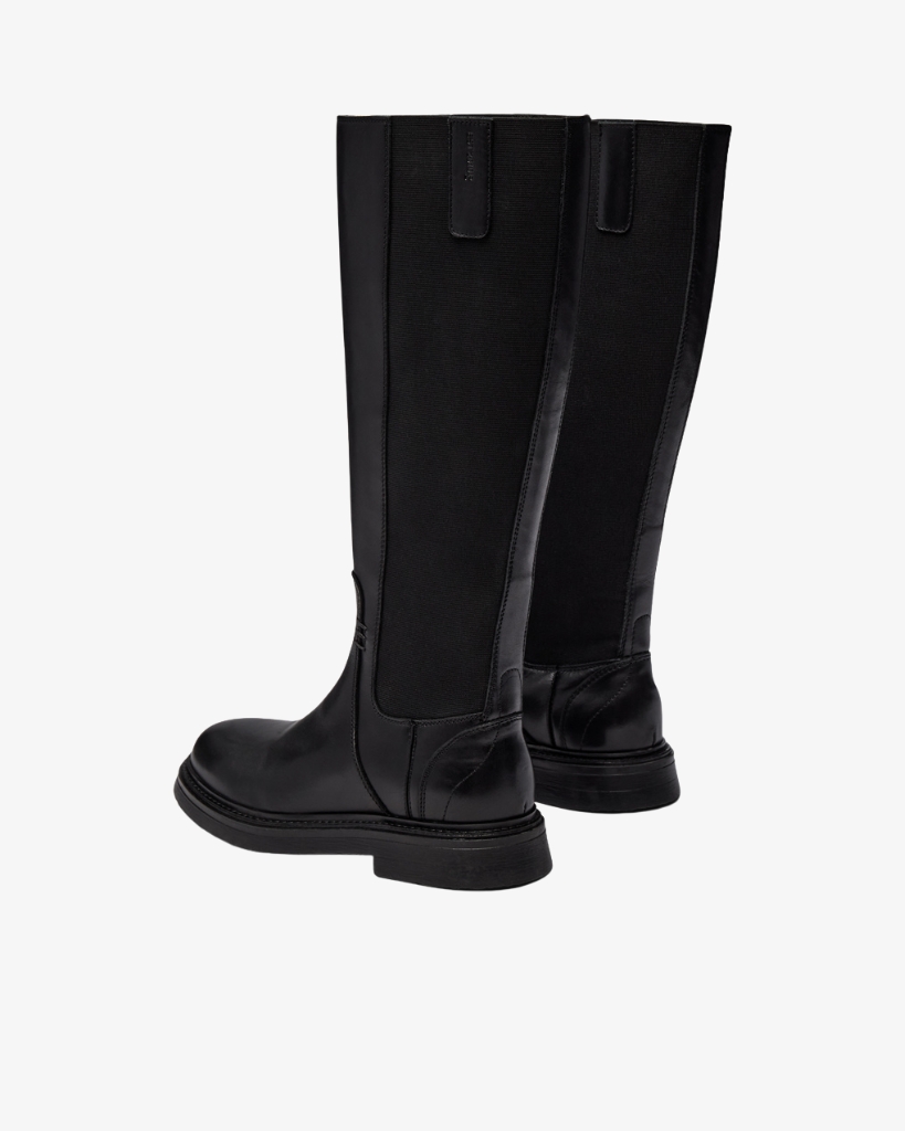 Opdag den elegante støvle i glat læder med strækpaneler, der sikrer en behagelig pasform omkring læggen. Den solide gummisål giver godt fodfæste, og indersiden er fuldt foret med læder for ekstra komfort. Håndlavet i Portugal med sans for detaljer og kvalitet.