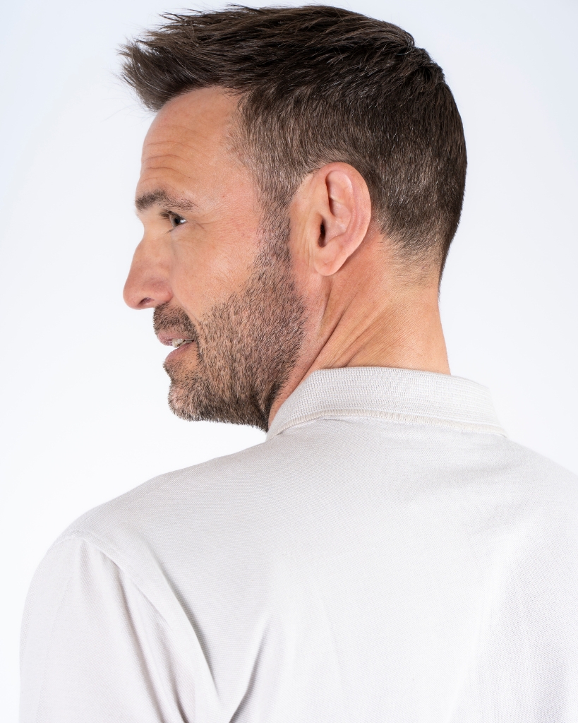 Klassisk polo i et enkelt og stilrent design med brystlomme. Den har en behagelig pasform og en let struktur i stoffet, som giver et pænt og roligt udtryk. Polokrave med knaplukning fuldender looket.