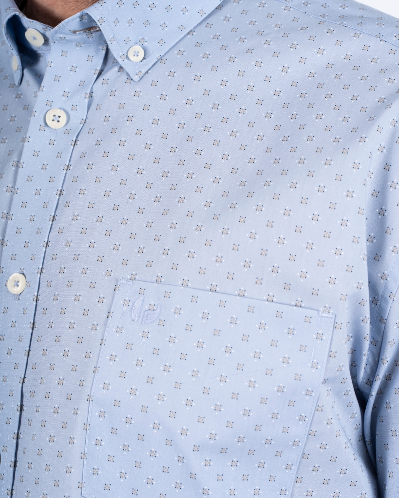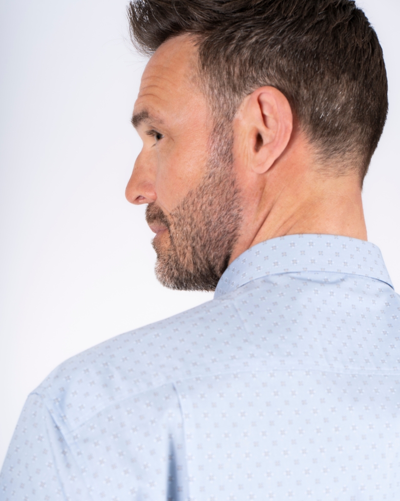 Klassisk kortærmet skjorte i en frisk lyseblå nuance med et diskret print. Den er lavet i en komfortabel pasform og har en brystlomme, som understreger det enkle og stilrene udtryk. En let kvalitet, der føles behagelig hele dagen.