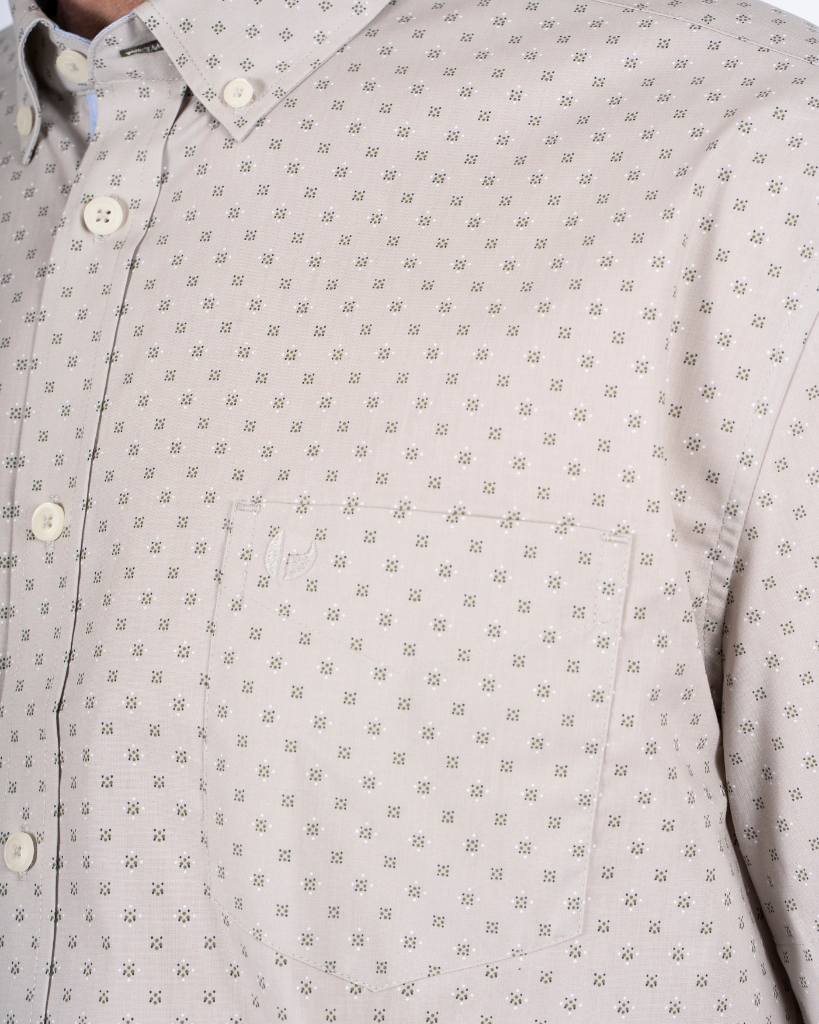 Klassisk kortærmet skjorte med et diskret print, der giver et roligt og stilrent udtryk. Den er lavet i en behagelig comfort fit og har en brystlomme, som fuldender det klassiske design. En let kvalitet, der føles rar hele dagen.