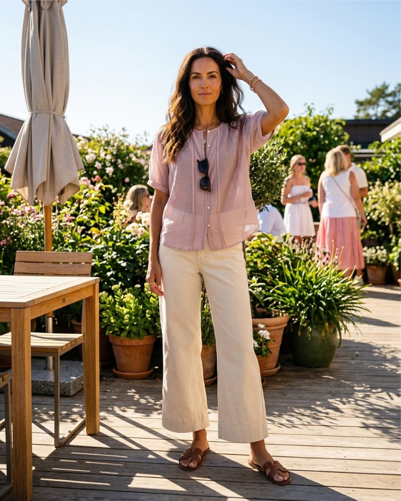 Feminin og let bluse fra Prepair med fine, dekorative detaljer. Blusen har rund hals og gennemgående knaplukning med små perlemorsknapper, som giver et elegant udtryk. De lodrette stikninger foran samt let rynkede skuldre og ærmer skaber en blød og flatterende silhuet. Den løse pasform gør den behagelig og nem at style.