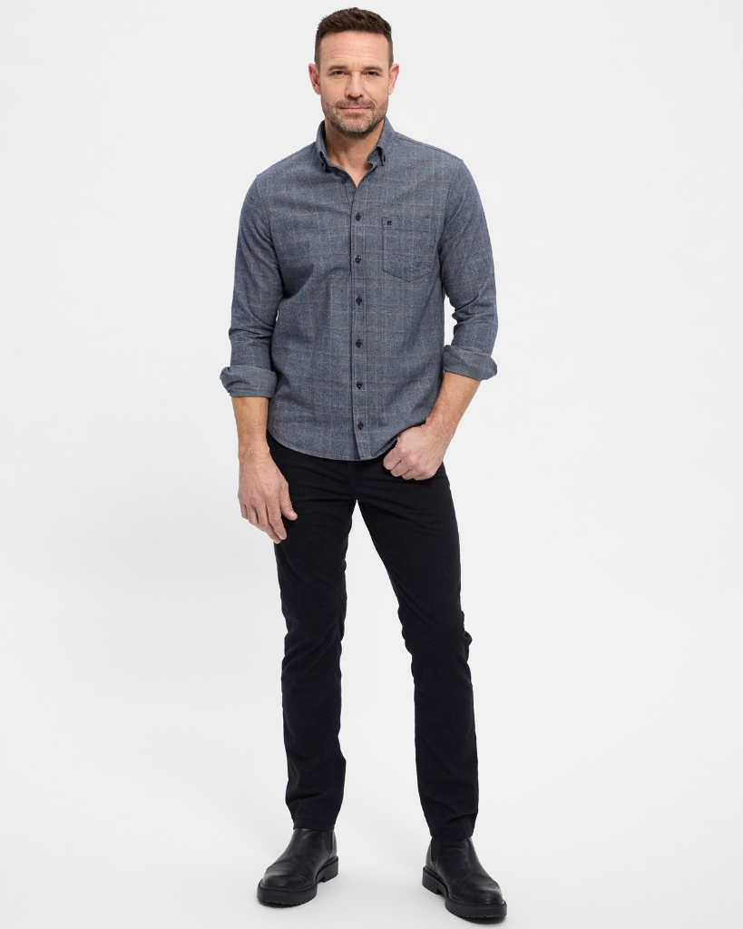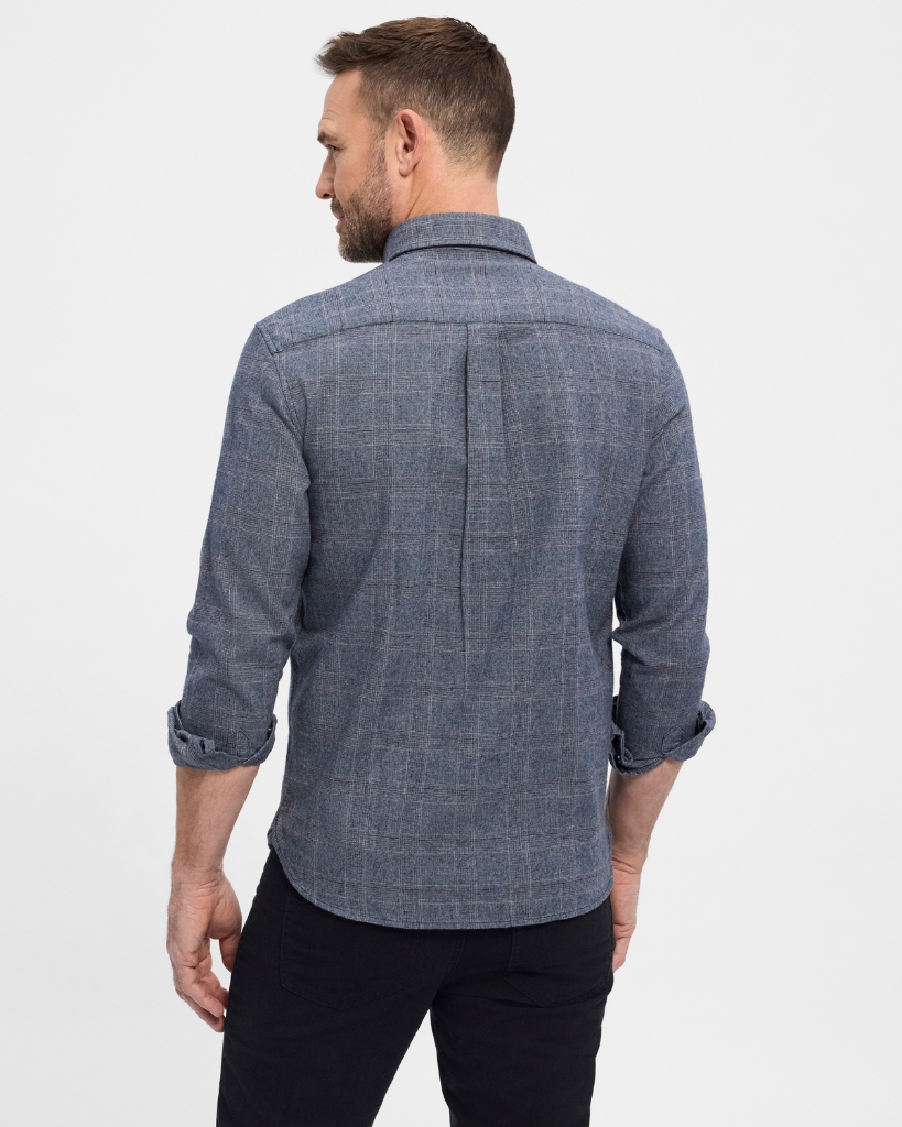 En alsidig skjorte i regular fit med et diskret vævet mønster. Fremstillet i 100% bomuld, der gør den blød, slidstærk og ideel til både arbejde og fritid.