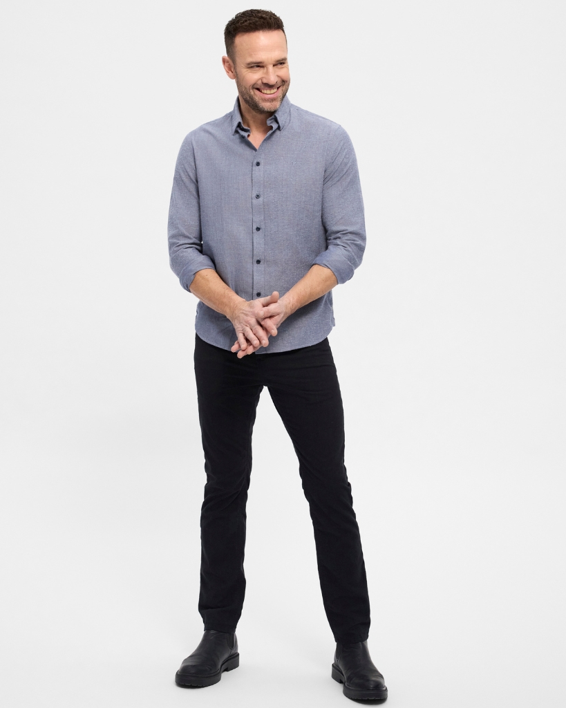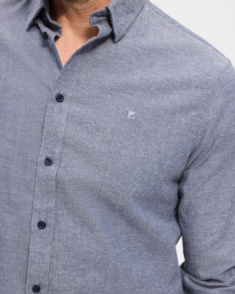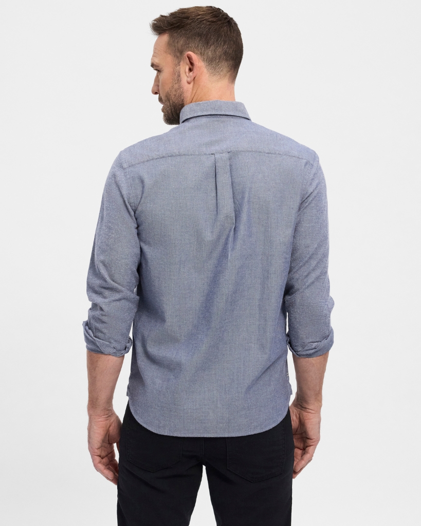 En tidløs langærmet skjorte med diskret mønster og klassisk pasform. Den er fremstillet i ren bomuld, som giver en behagelig fornemmelse hele dagen. Et alsidigt valg, der fungerer både til pænt og afslappet brug.