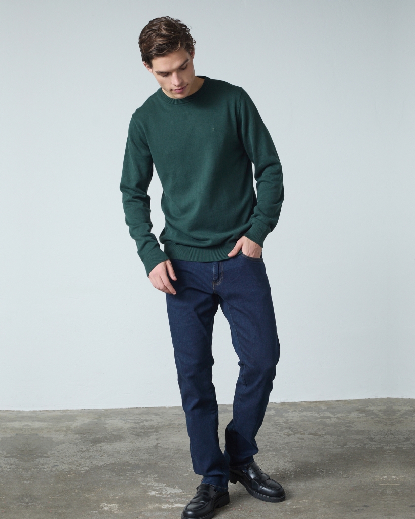 En klassisk og alsidig striktrøje i en blød bomuldskvalitet. Julian har rund hals, diskret broderi på brystet og et enkelt, tidløst udtryk. Perfekt til lag-på-lag eller alene.