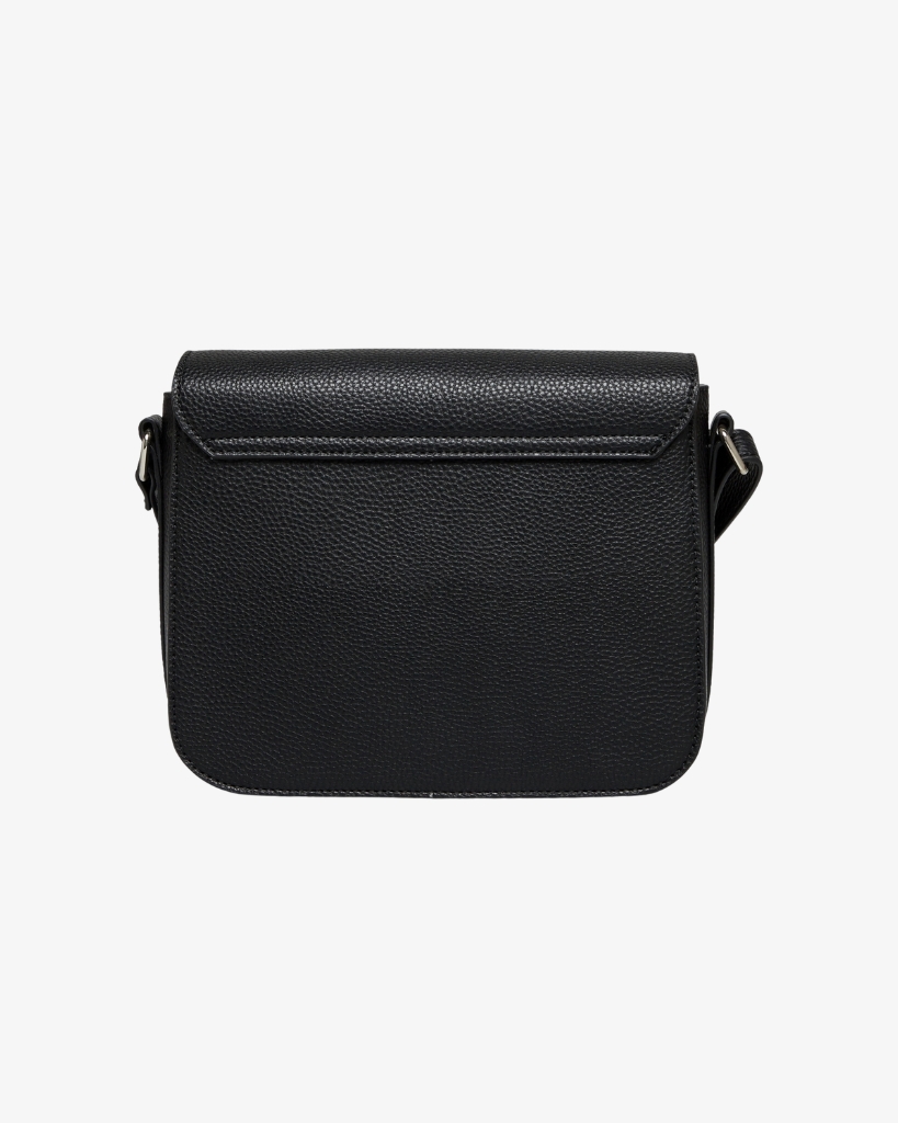 Klassisk og stilren skuldertaske fra Rosemunde i sort vegansk læderlook. Tasken har en justerbar rem og metalspænde foran, og den diskrete logo-detalje fuldender det elegante design.