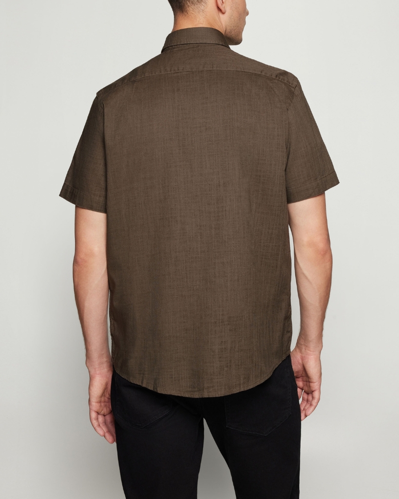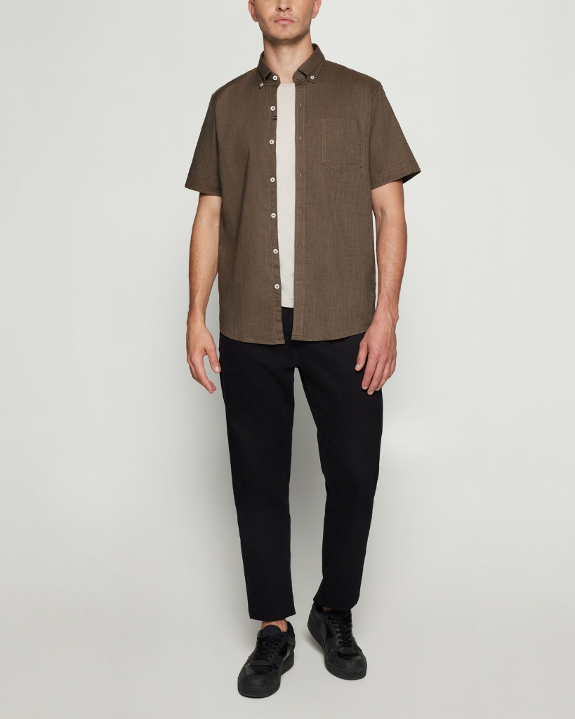 En klassisk kortærmet skjorte i en dyb brun nuance med et enkelt og tidløst udtryk. Den lette bomuldskvalitet giver en behagelig følelse, mens button-down kraven og brystlommen tilfører et pænt og velklædt look.