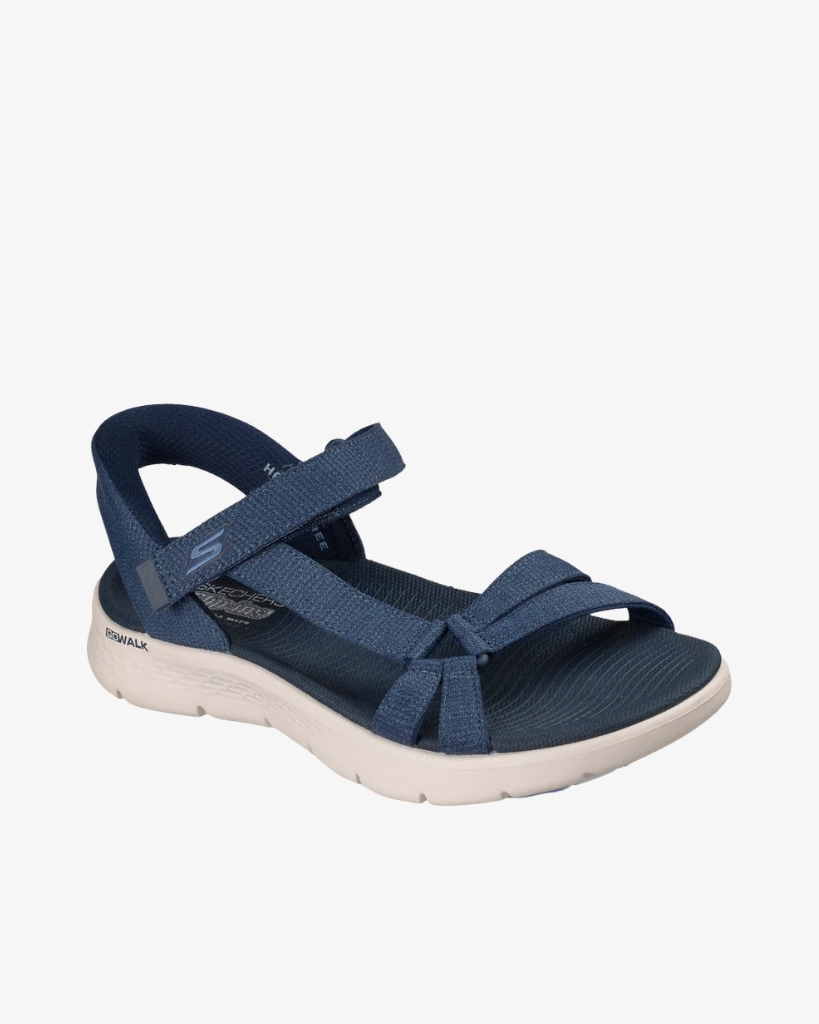 Let og fleksibel sandal fra Skechers med fokus på nem komfort og funktion. Den smarte Slip-Ins konstruktion gør den hurtig at tage på, mens de bløde remme og lette sål giver en behagelig støtte gennem hele dagen. Den sporty stil kombineres med en stødabsorberende bund.
