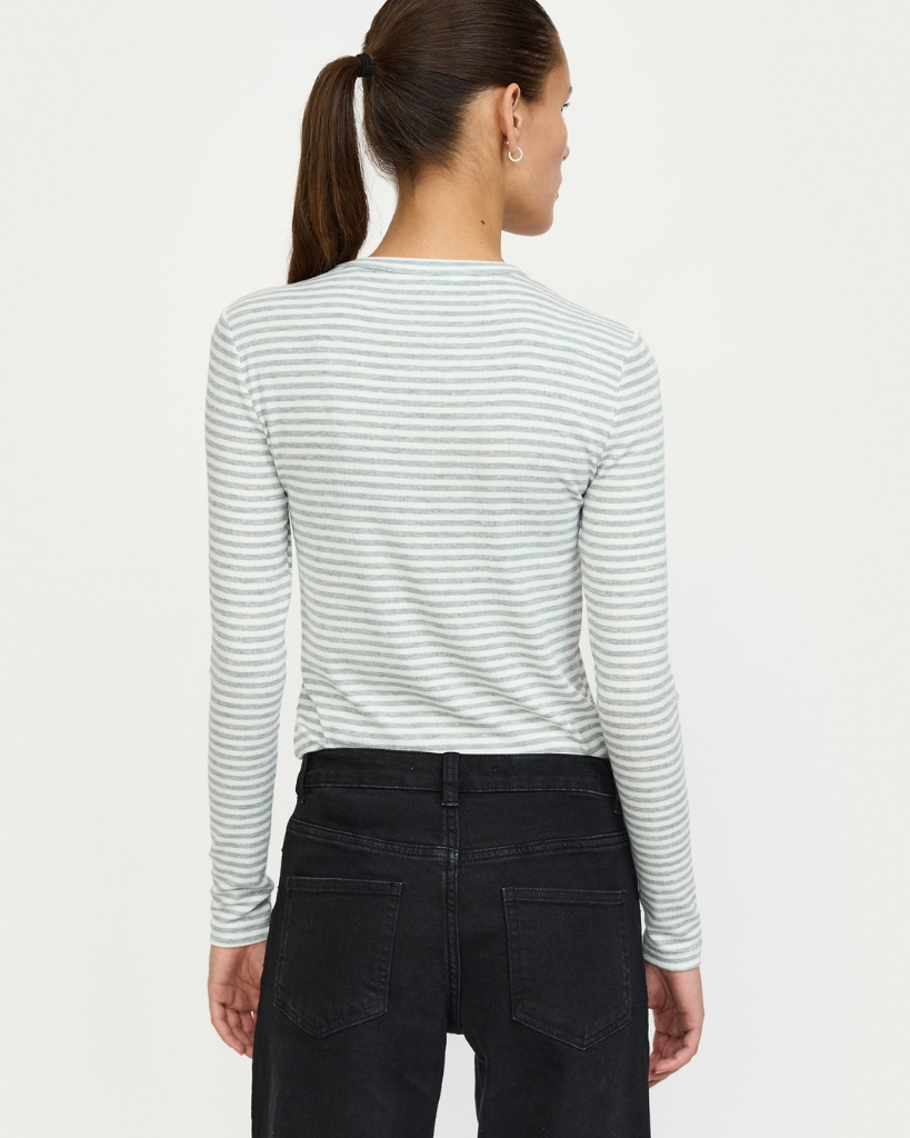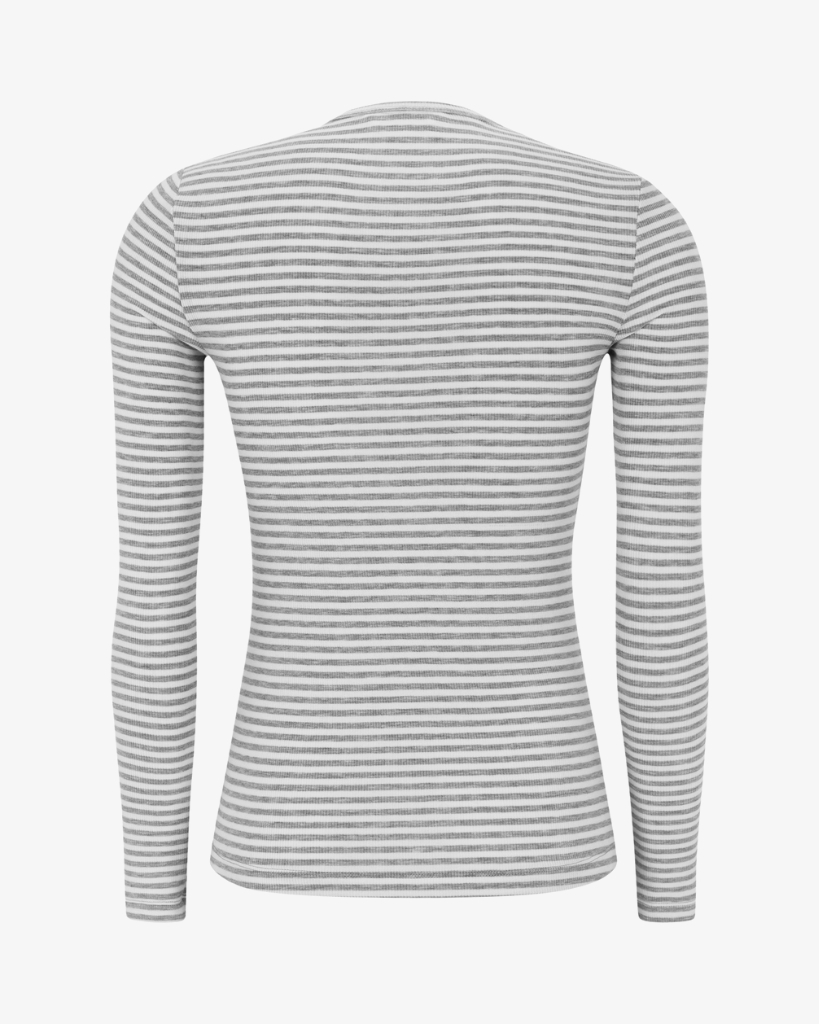 Denne langærmede t-shirt fra Soft Rebels er en ægte favorit. Den er lavet i en superblød ribbet kvalitet med smalle striber og tætsiddende pasform. Perfekt alene eller som lag under strik og skjorter.
