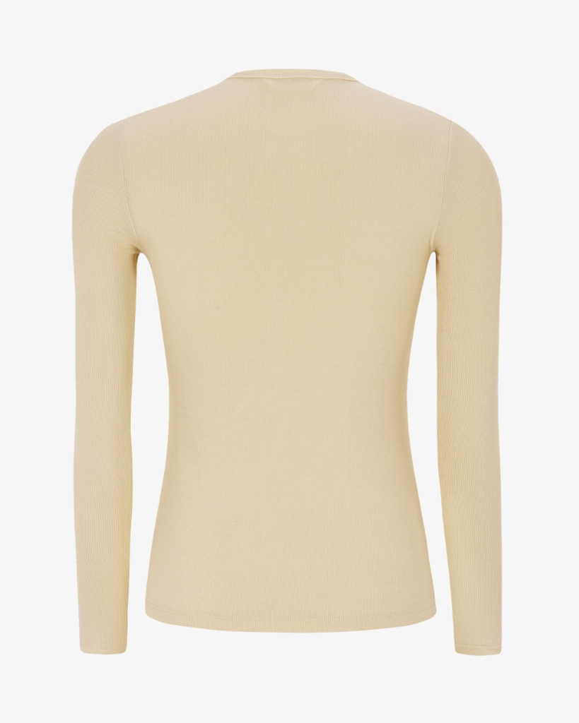 En enkel og tætsiddende ribtop fra Soft Rebels i en blød og strækbar kvalitet. Den fine ribstruktur giver et elegant udtryk, mens den slim fit pasform følger kroppen flot. Med klassisk rund hals og lange ærmer er den et sikkert basisitem i garderoben.