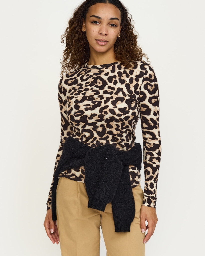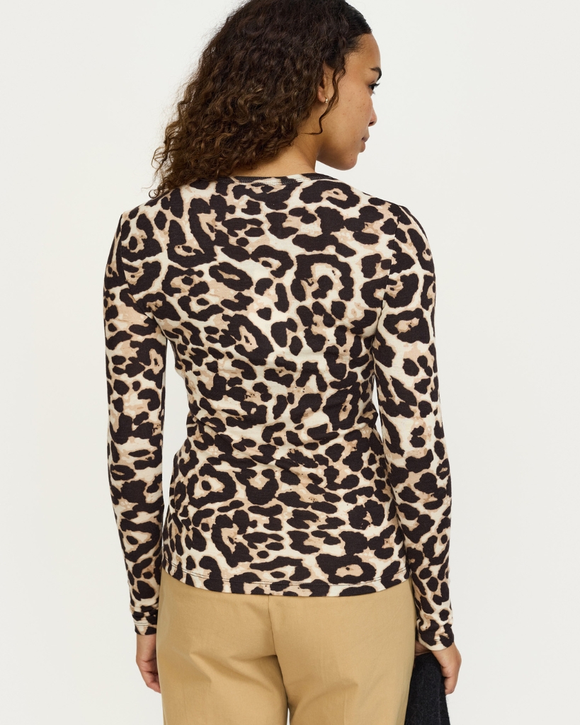 Giv dit outfit kant med denne tætsiddende langærmede top i leopardprint fra Soft Rebels. Stoffet er superblødt og fleksibelt med en let mesh-effekt, hvilket gør den ideel som lag under strik eller blazer.