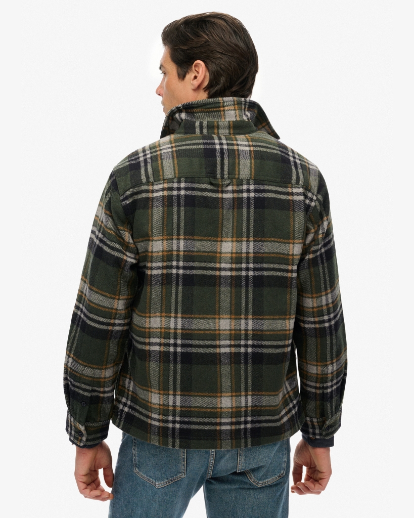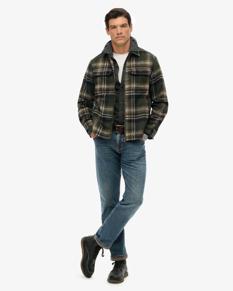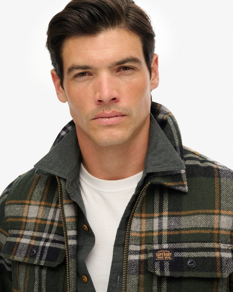 Kraftig overskjorte i uldblanding med lynlås og ternet design i grønne og gyldne nuancer. Den oversized pasform og praktiske lommer gør den perfekt som overgangslag til kølige dage.