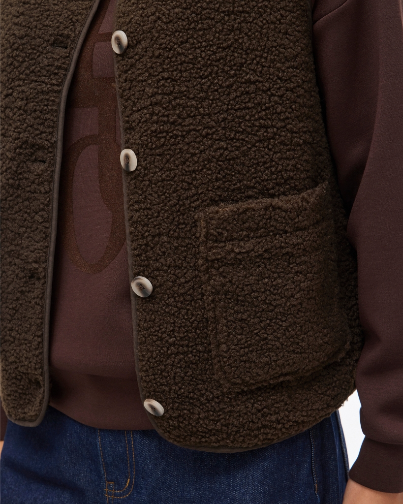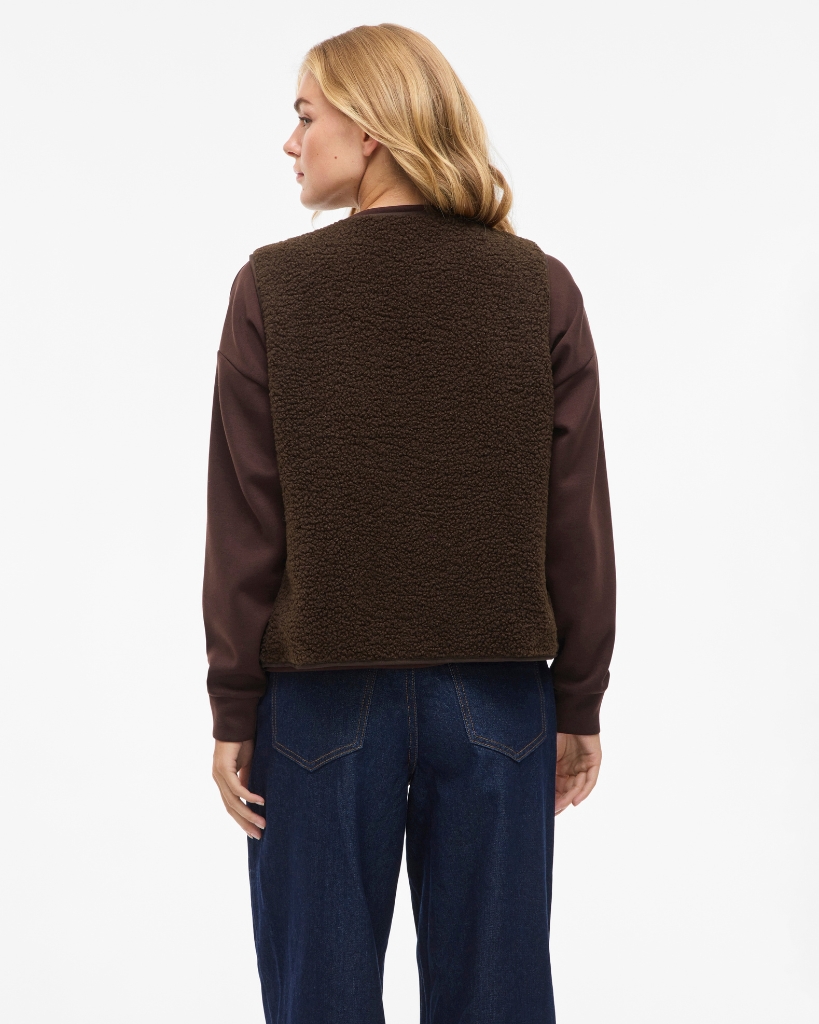 Tilføj lidt blød struktur til din garderobe med denne hyggelige vest fra VILA. Den er lavet i teddyfleece, har rund hals og dekorative knapper foran. To rummelige lommer fuldender det afslappede look. Perfekt som et lunt lag over en strik.